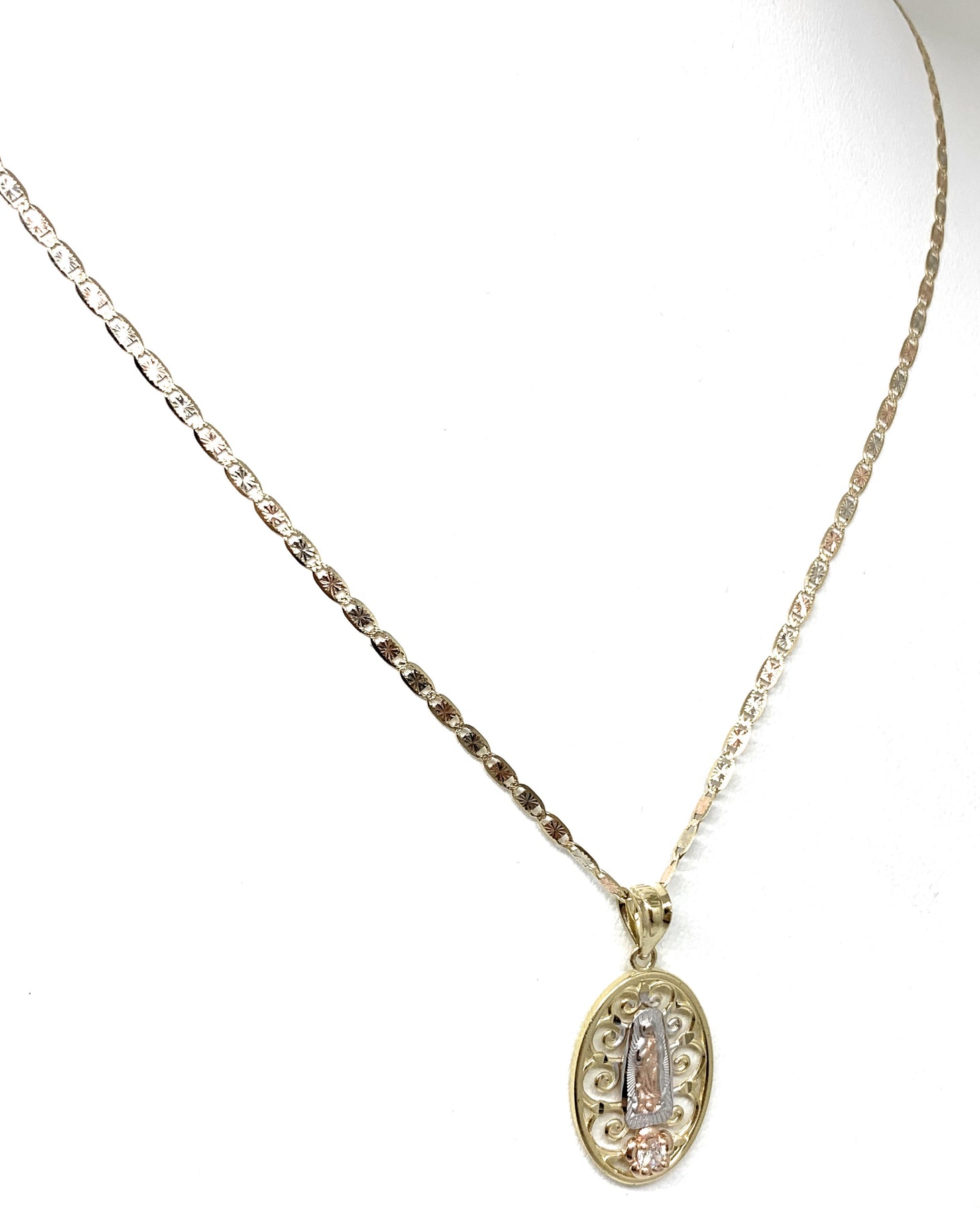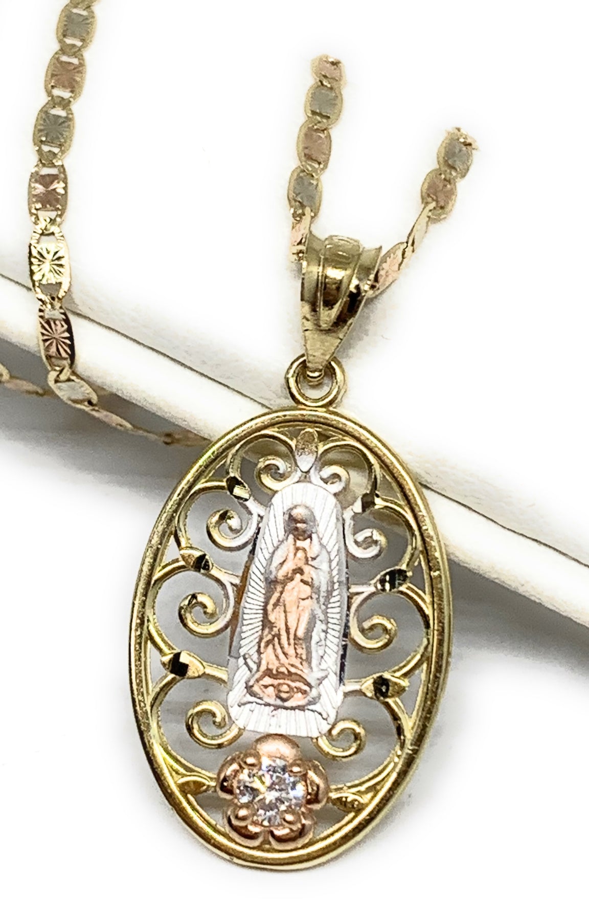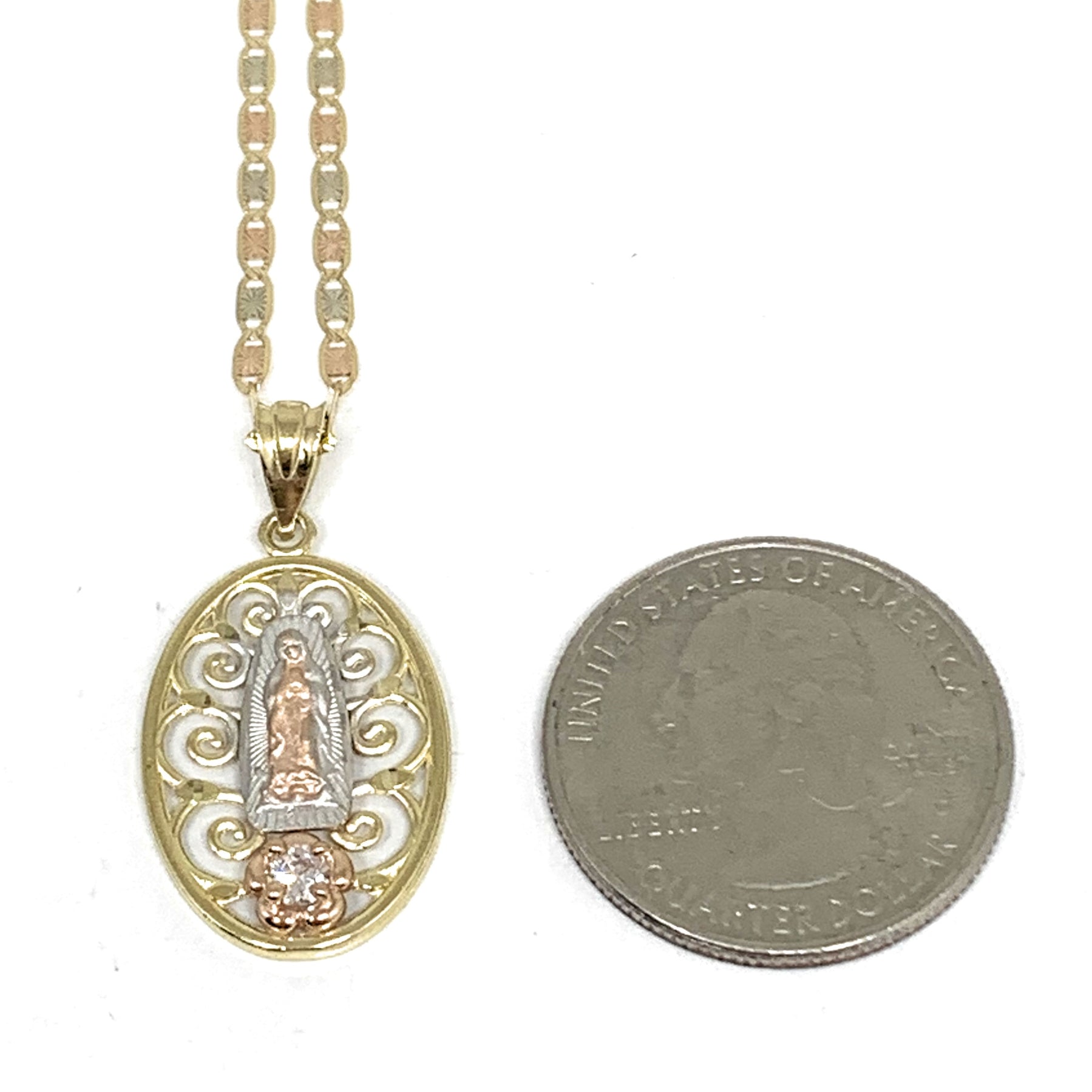 The classic Virgin Mary depiction is displayed with beautiful attention to detail and made of 10 karat solid gold guaranteed. The pendant and chain have beautifully designed vibrant colors and textures that makes the image come out. This is a high quality 10 karat solid gold product.