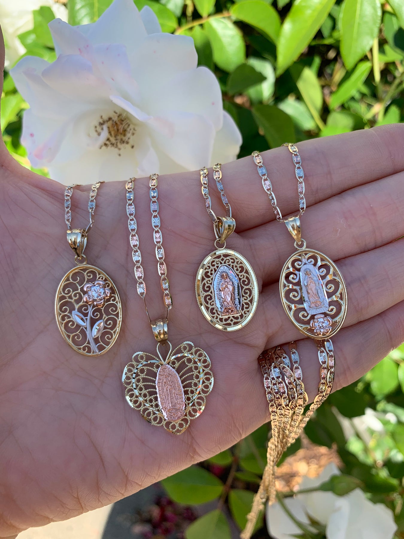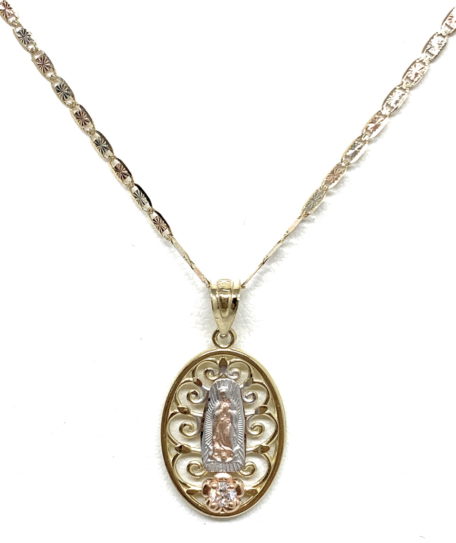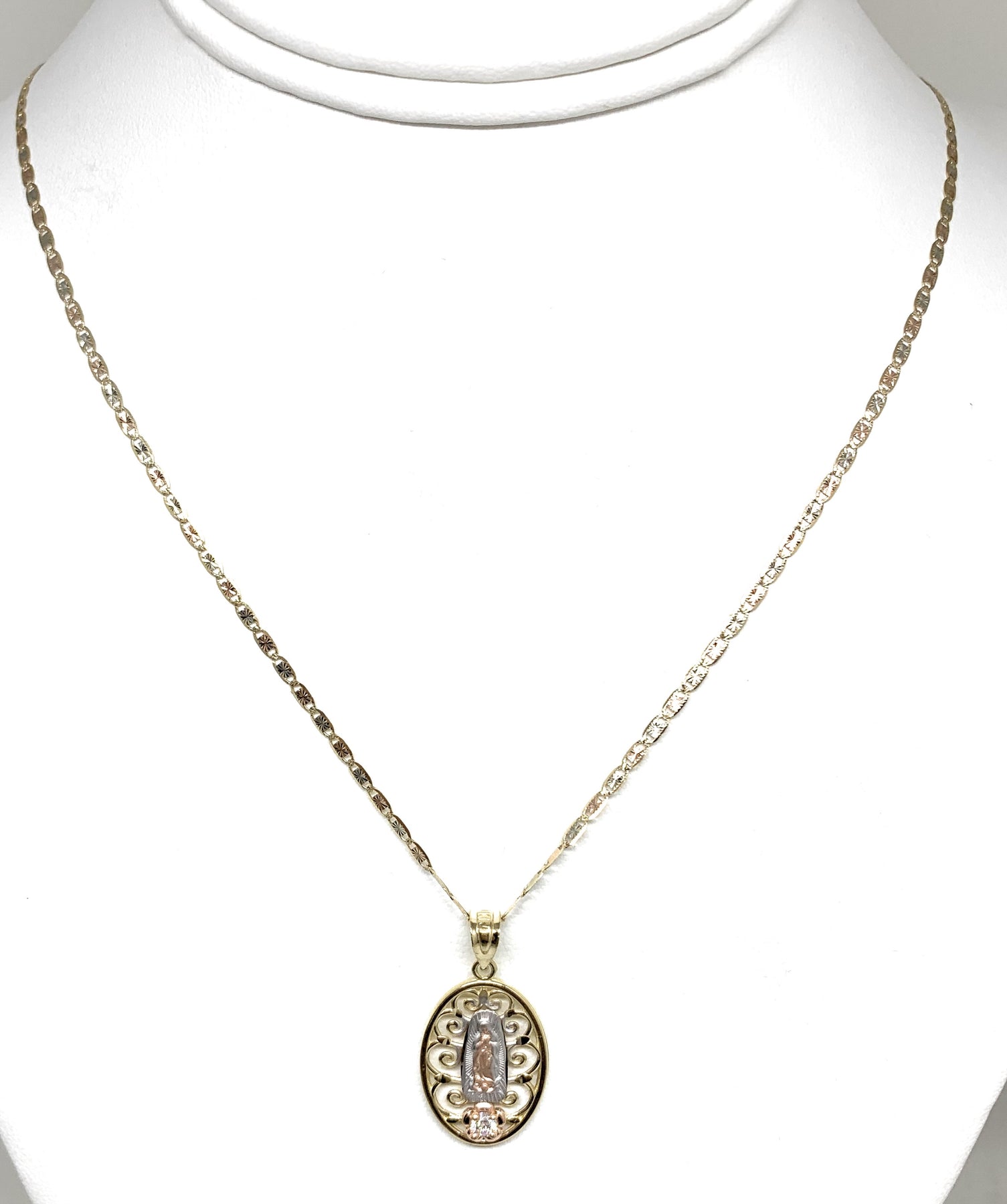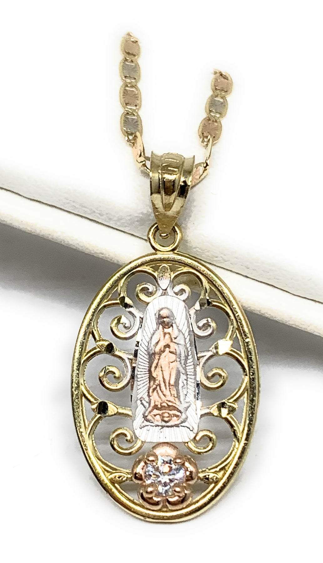 The classic Virgin Mary depiction is displayed with beautiful attention to detail and made of 10 karat solid gold guaranteed. The pendant and chain have beautifully designed vibrant colors and textures that makes the image come out. This is a high quality 10 karat solid gold product.