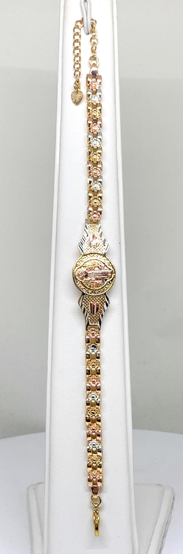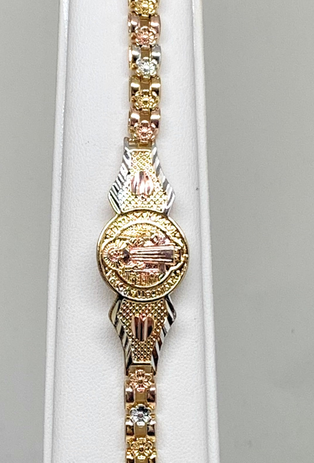 Tri-Color Saint Benedict Bracelet San Benito Pulsera Tres Colores Oro Laminado 8"