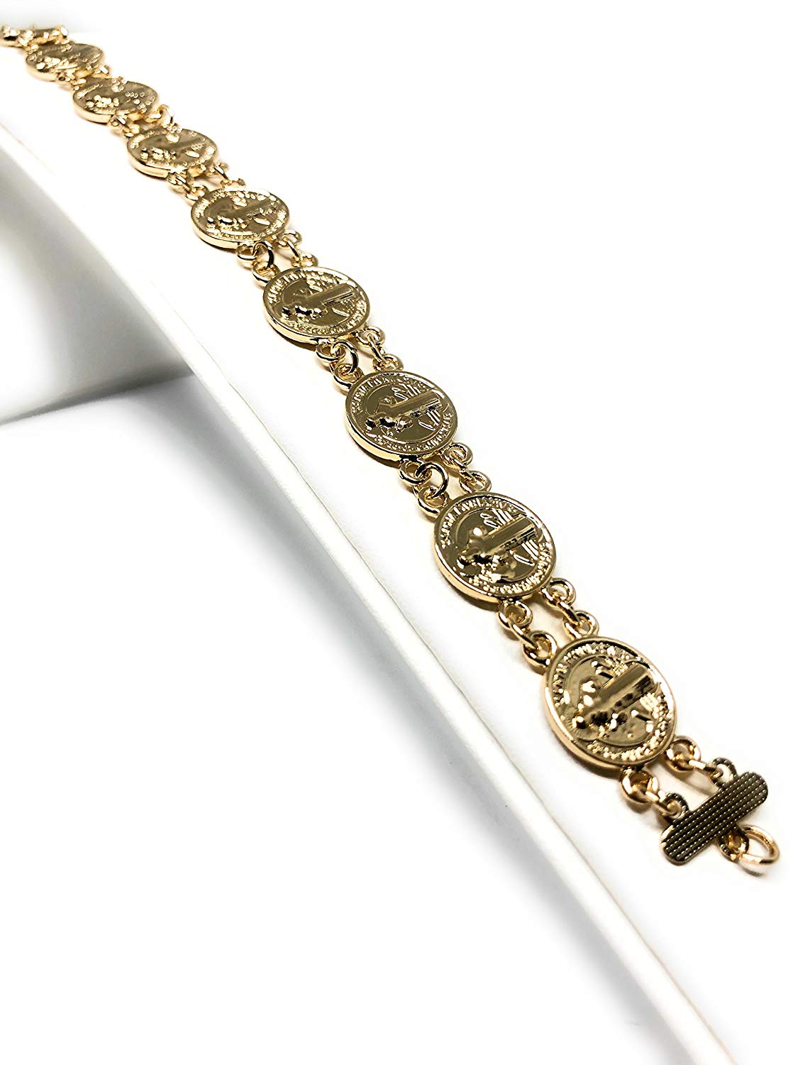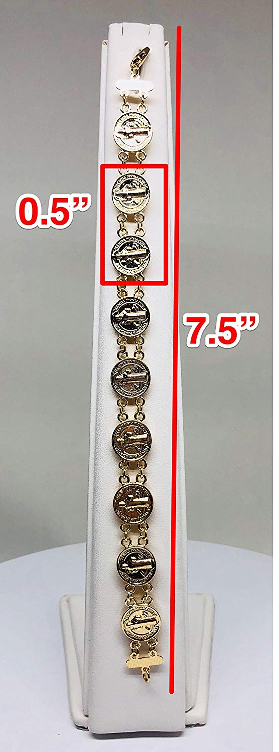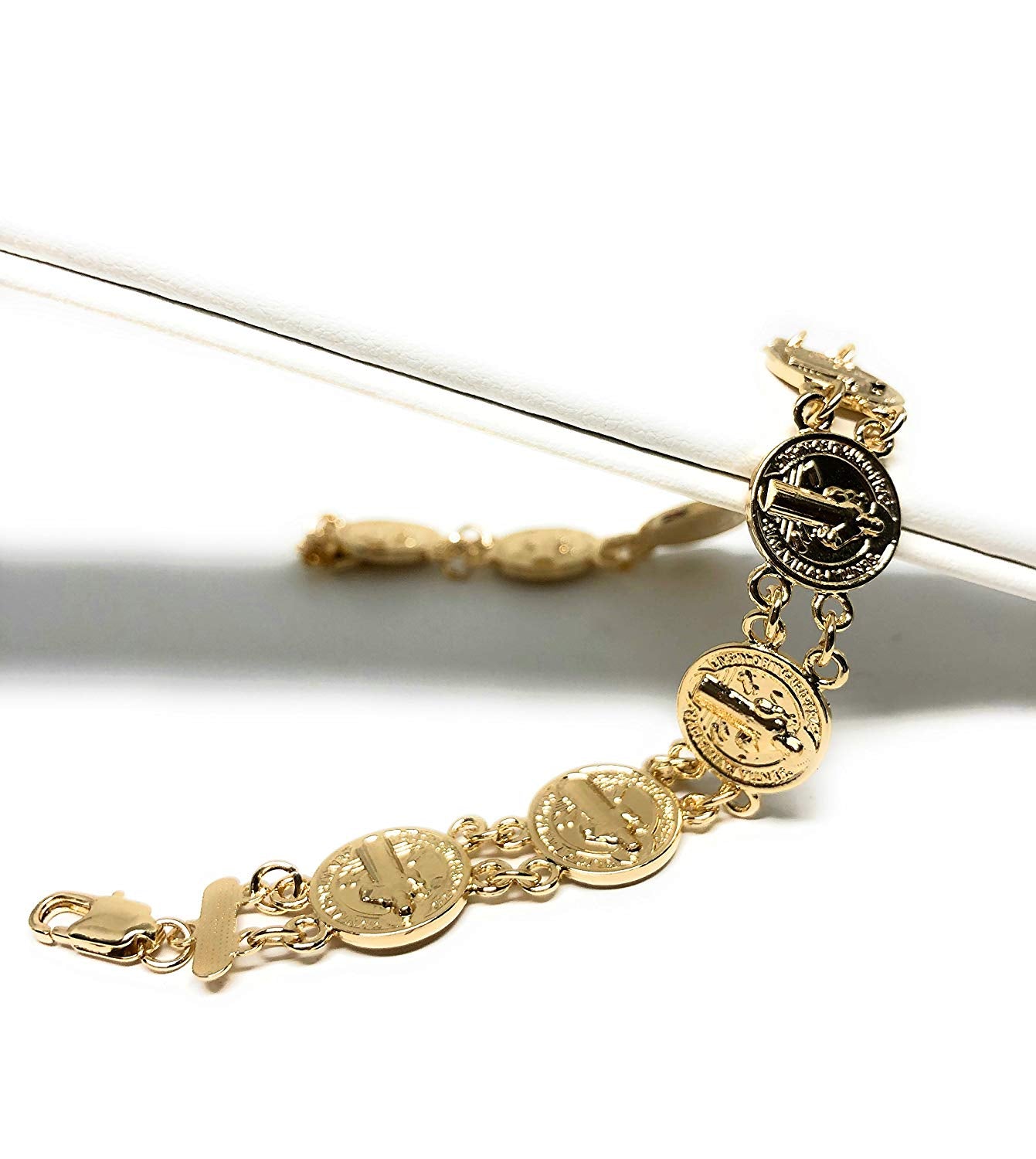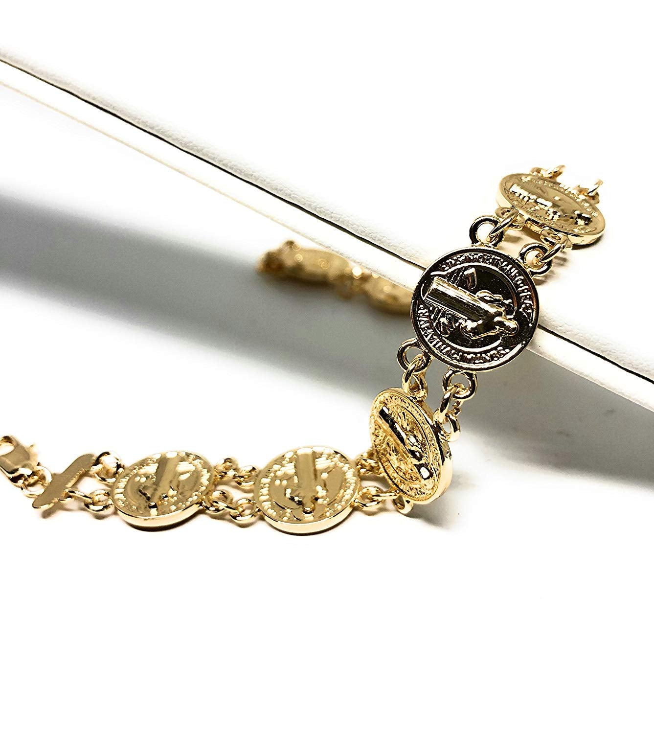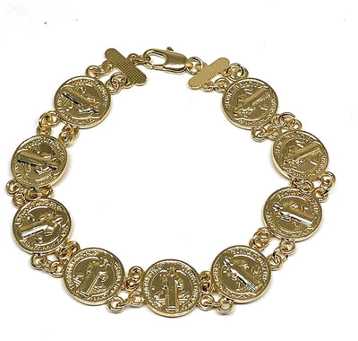 Gold Plated Saint Benedict Bracelet 7.5"/Pulsera de San Benito 7.5" Oro Laminado