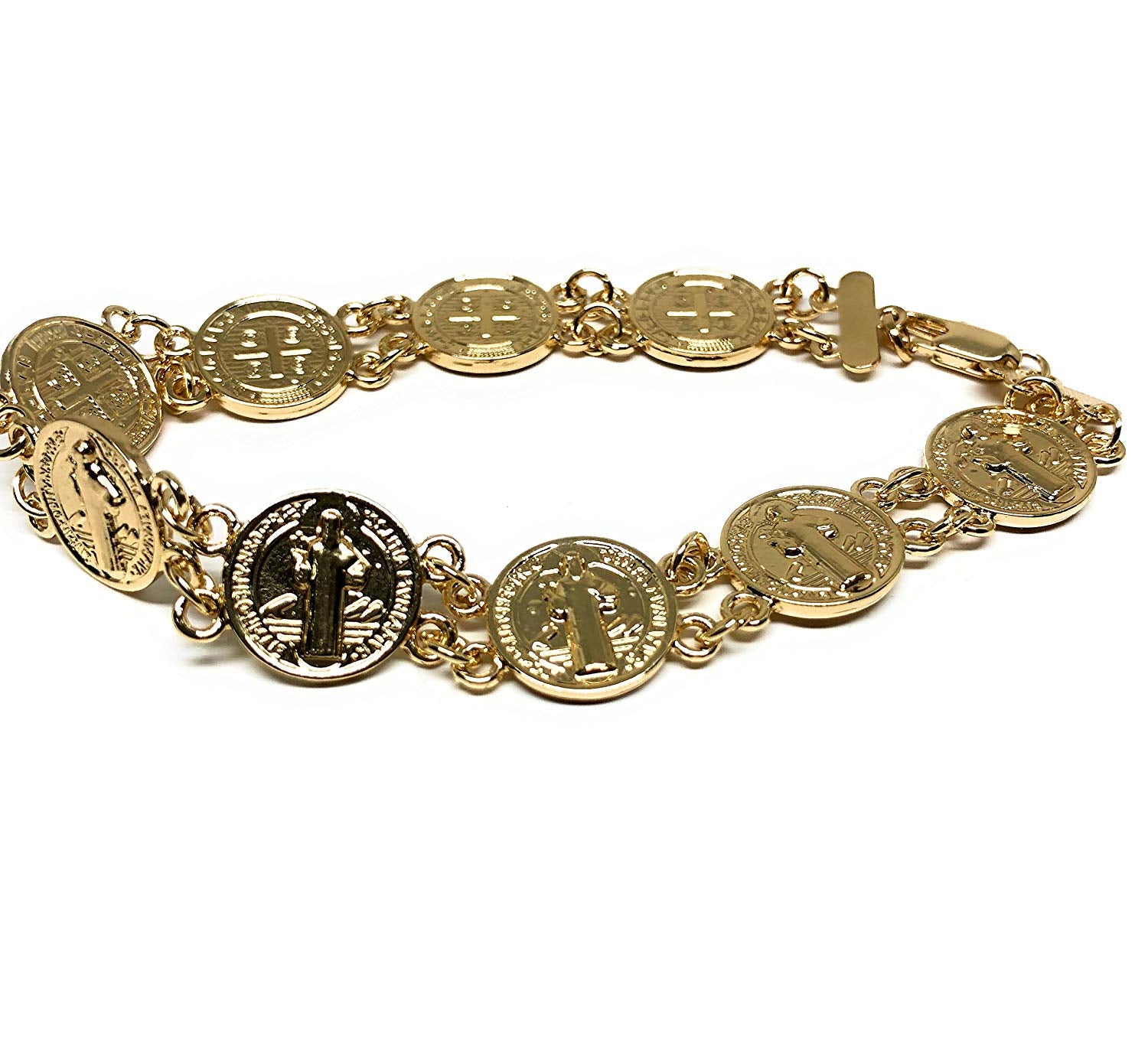 San Benito Pulsera Saint Benedict Bracelet Oro laminado 7.5"
