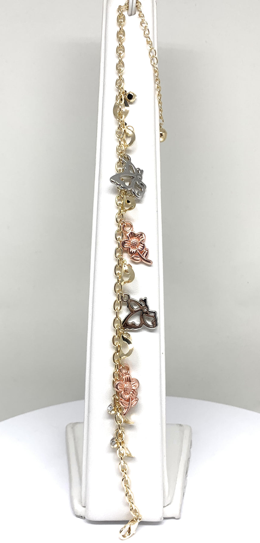 Gold Plated Butterfly & Flower CZ Ankle Bracelet 8-11”