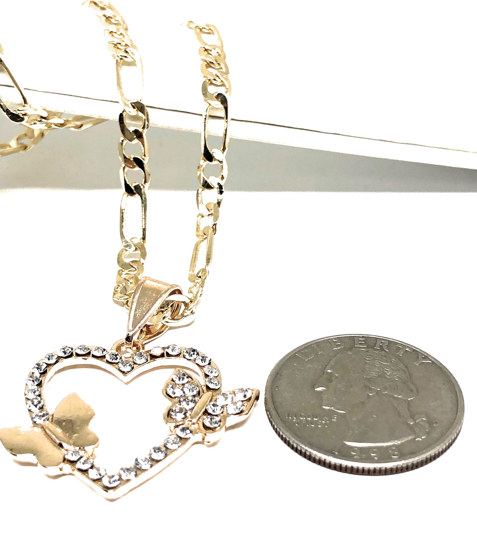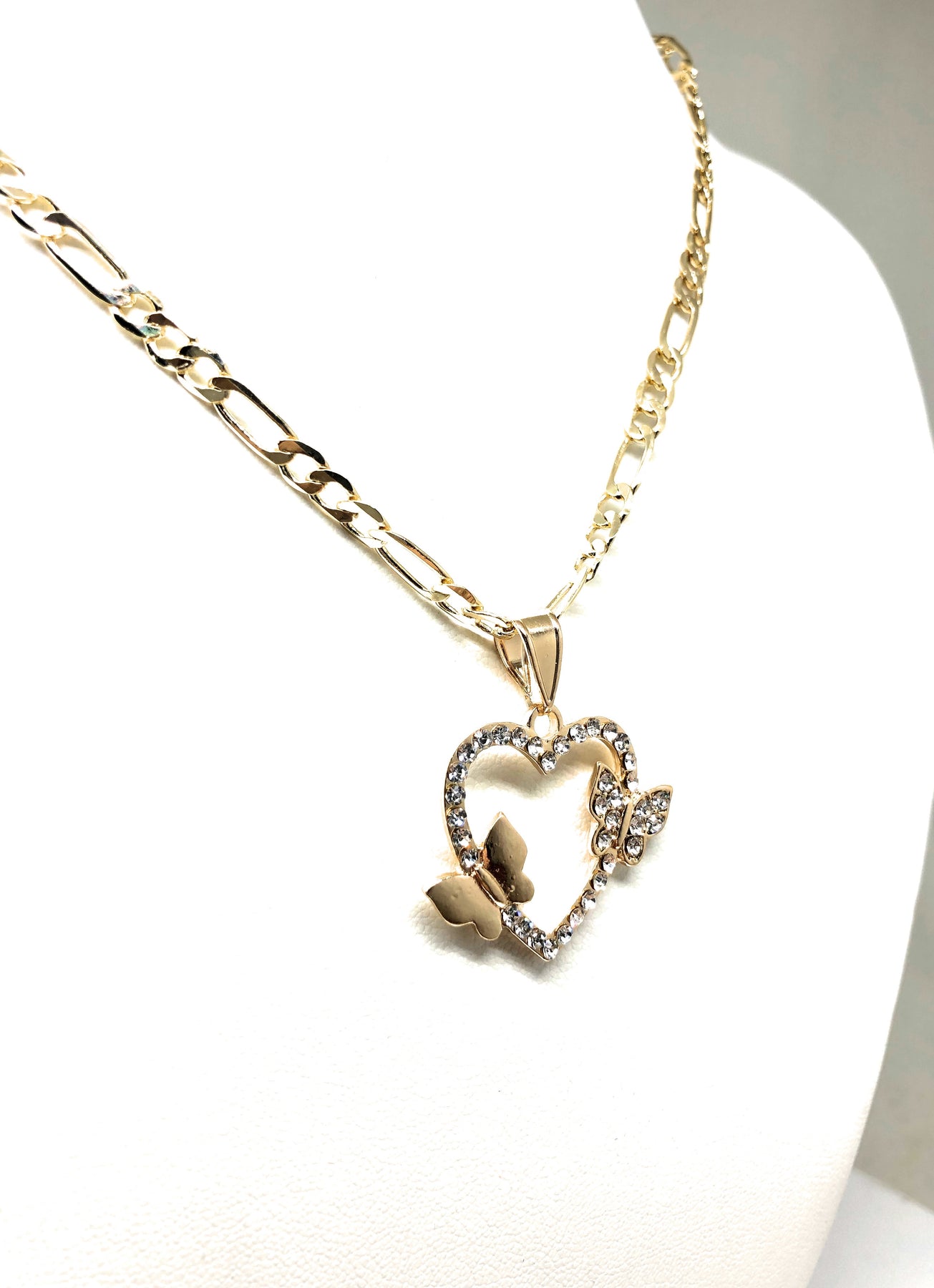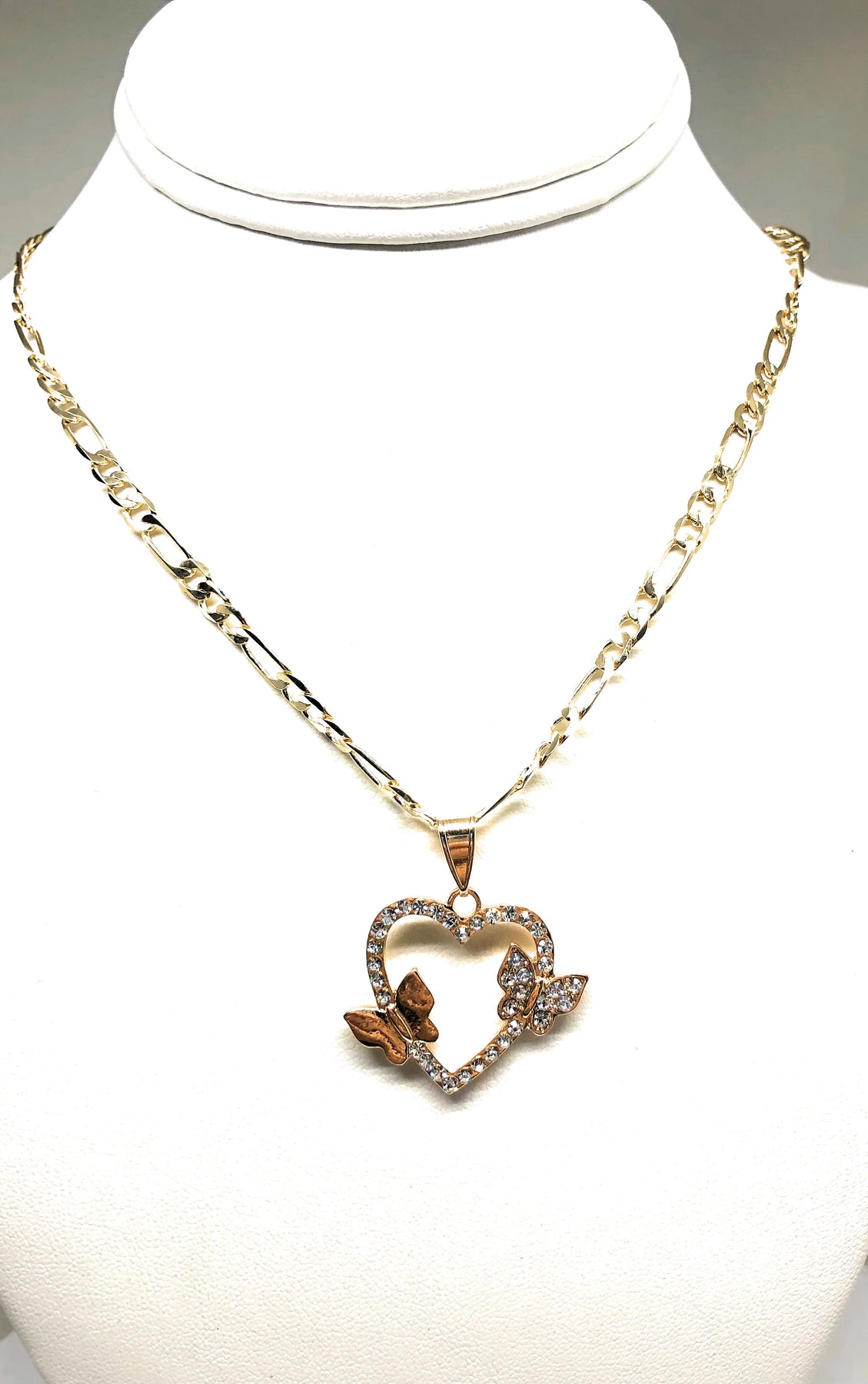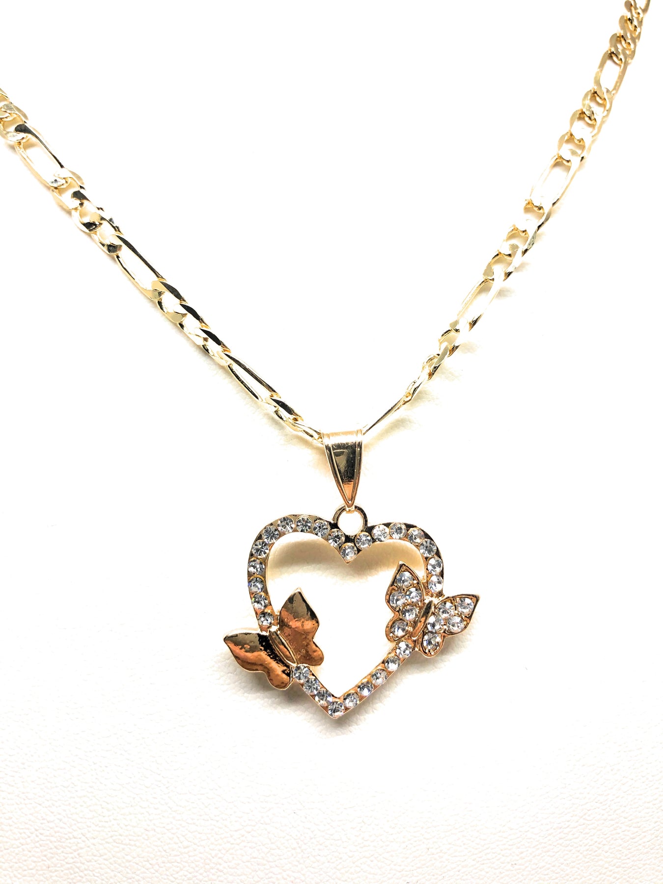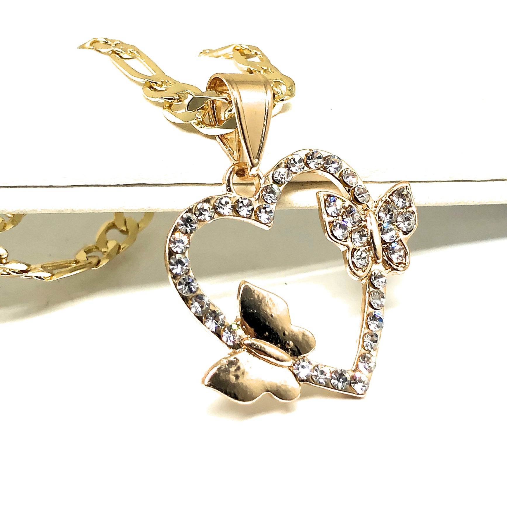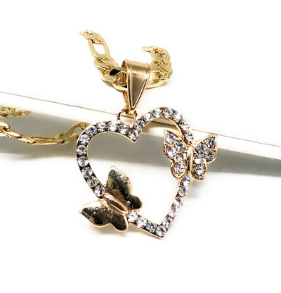 Gold Plated Butterfly Heart CZ Pendant Necklace Chain 24” Corazon