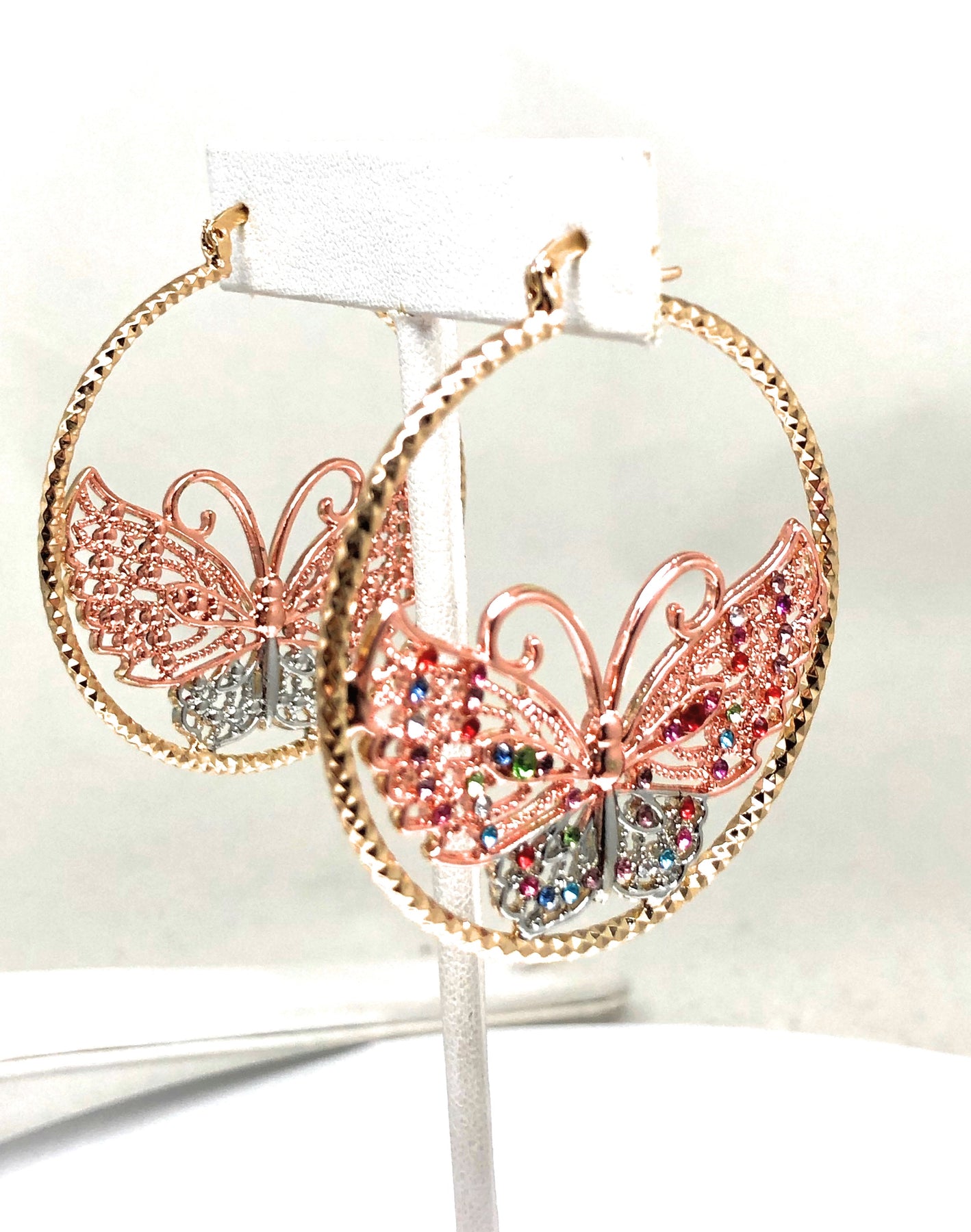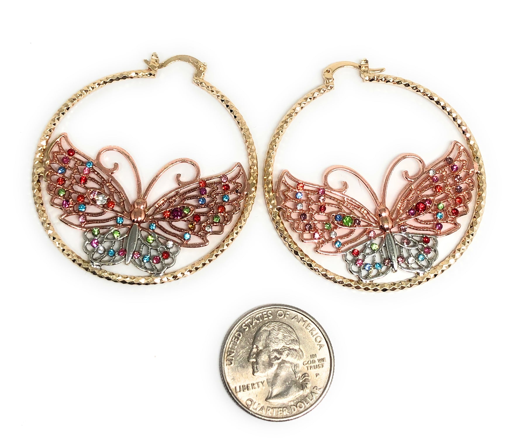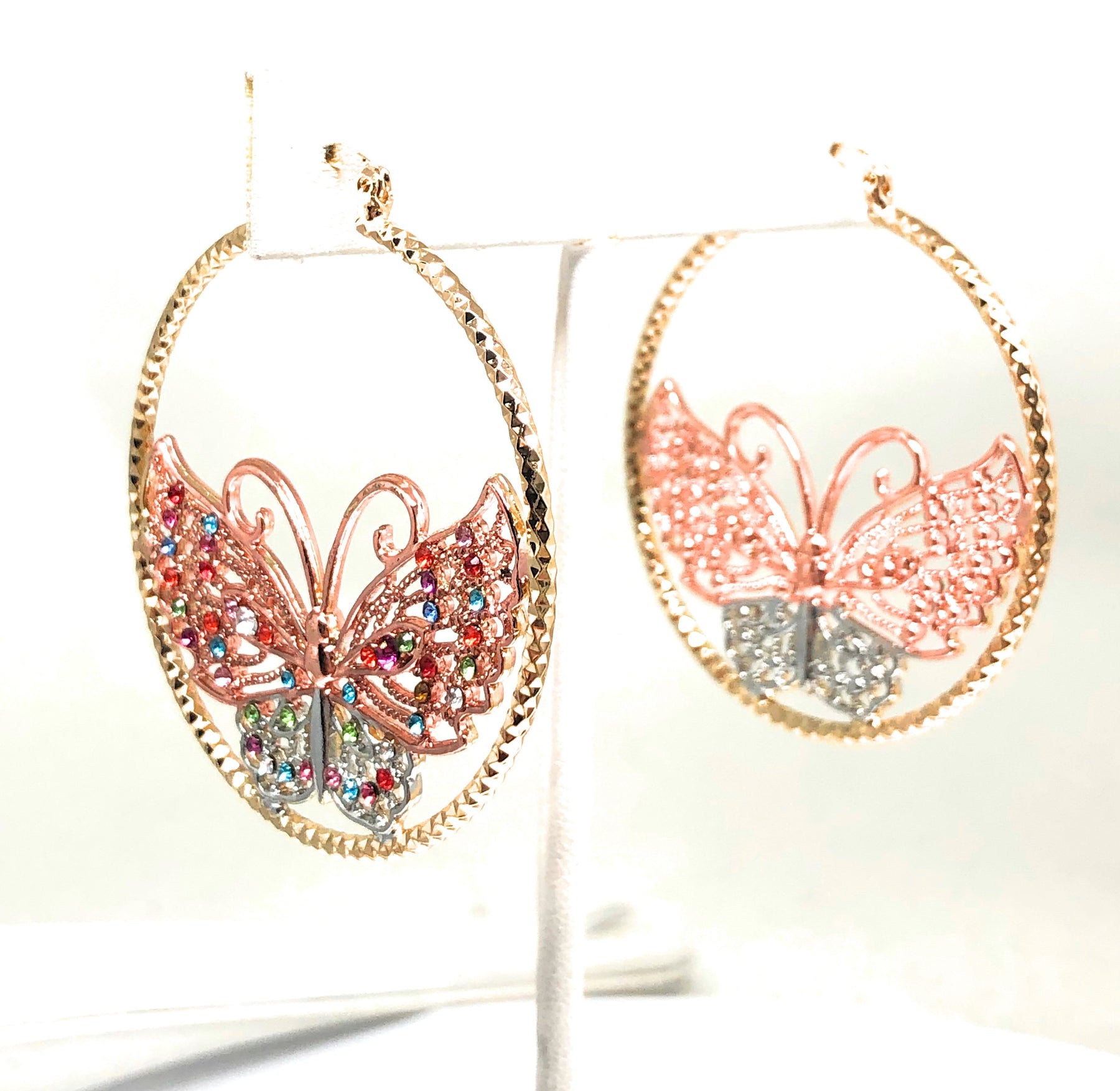 Gold Plated Butterfly Hoop Earrings Mariposa Aretes Arracadas