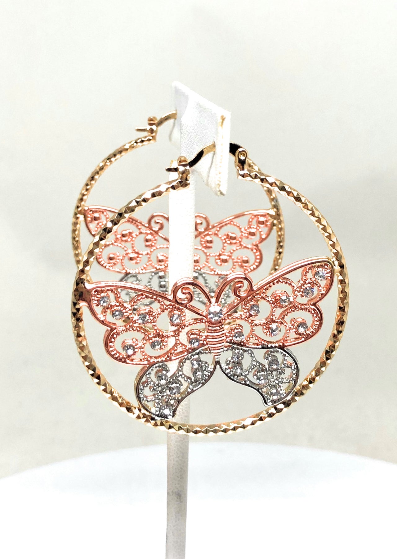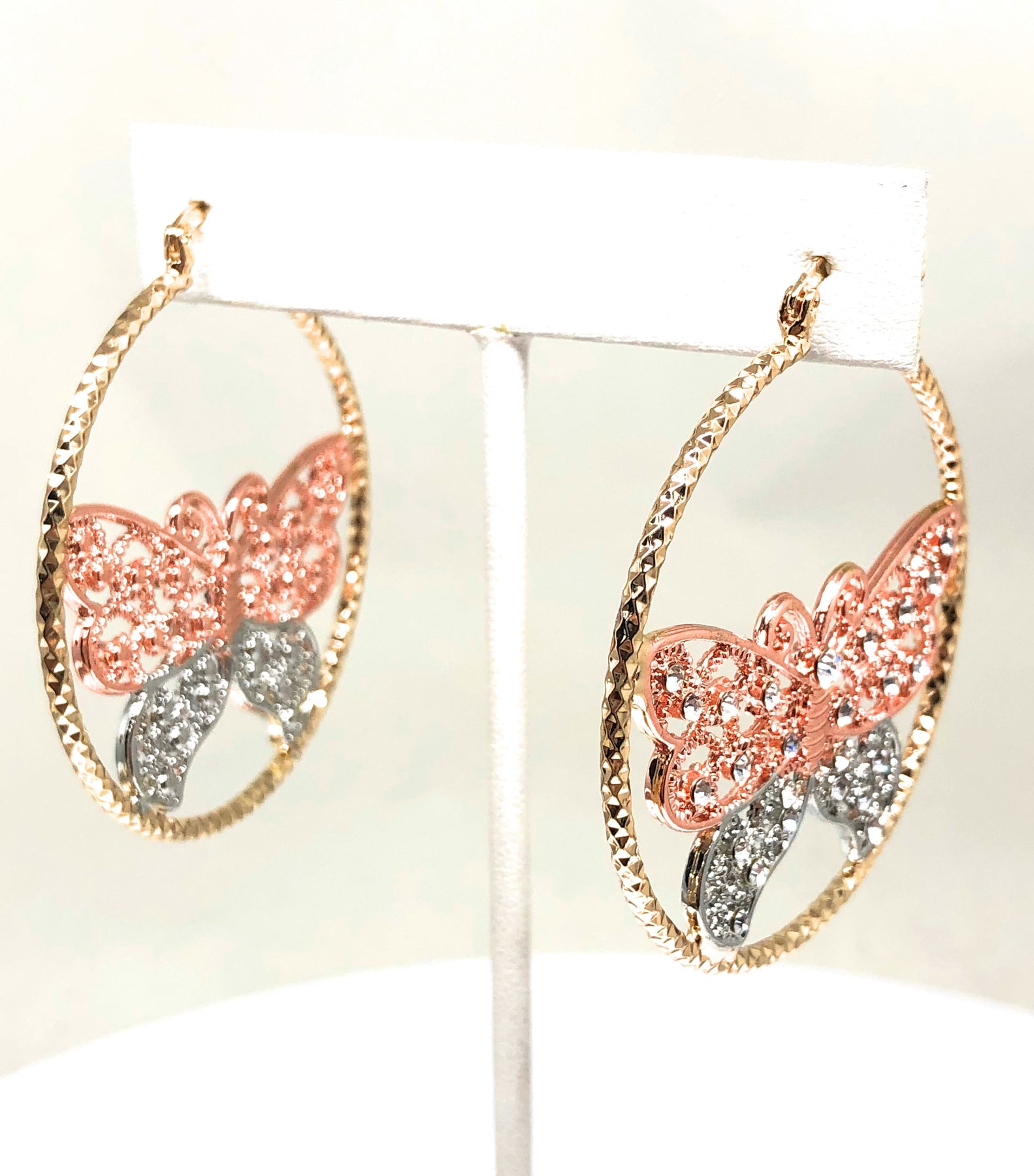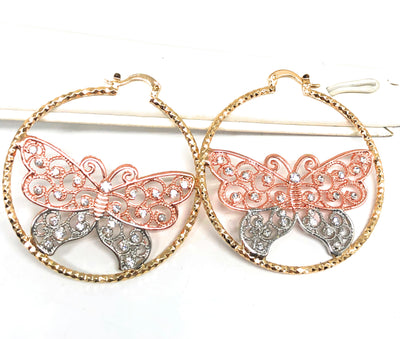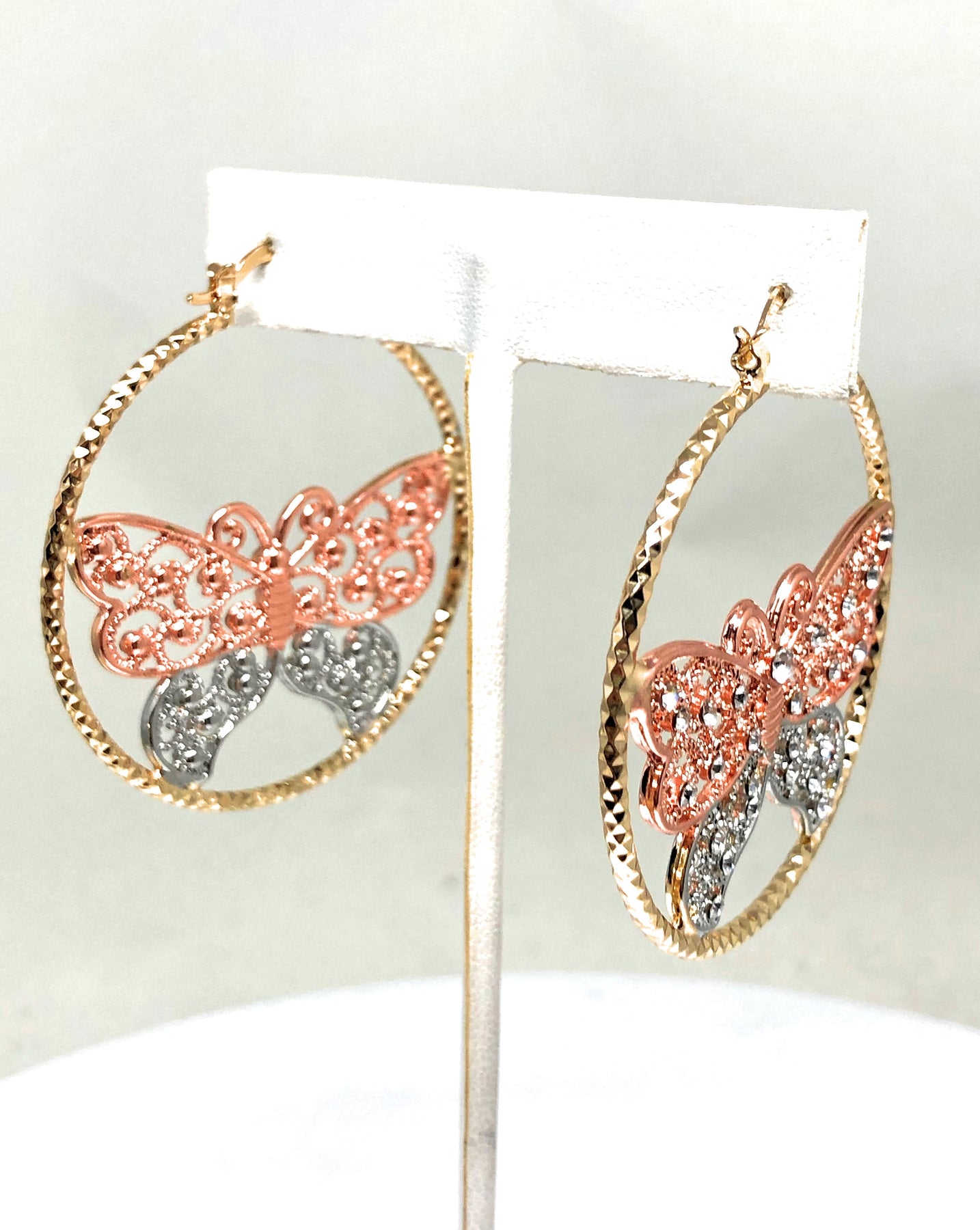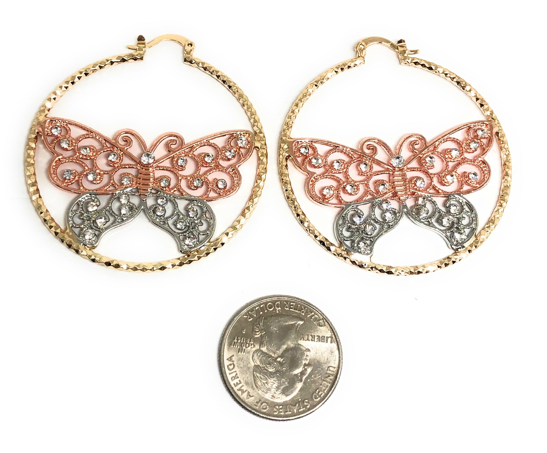 Gold Plated Butterfly Hoop Earrings Mariposa Aretes Arracadas