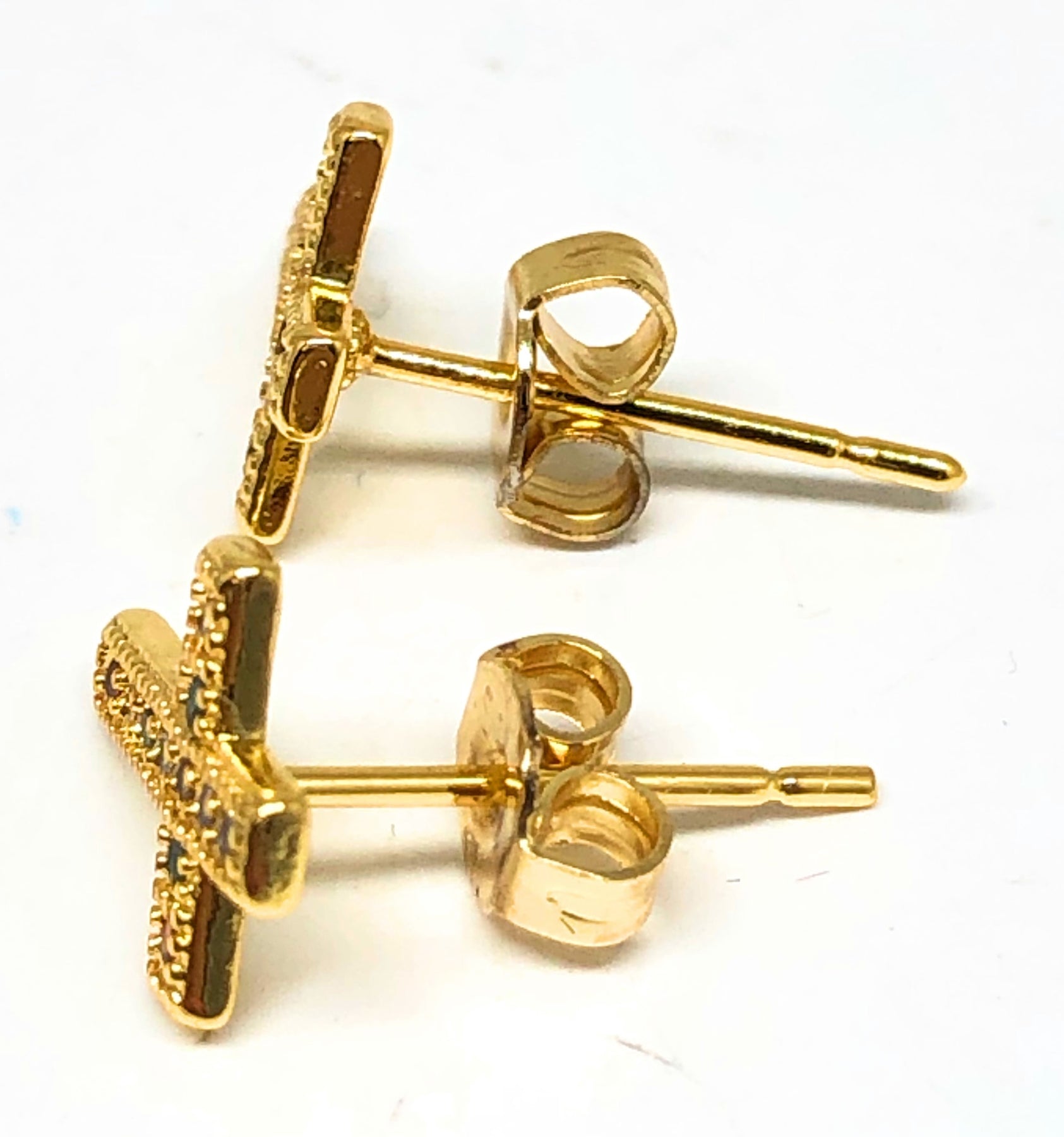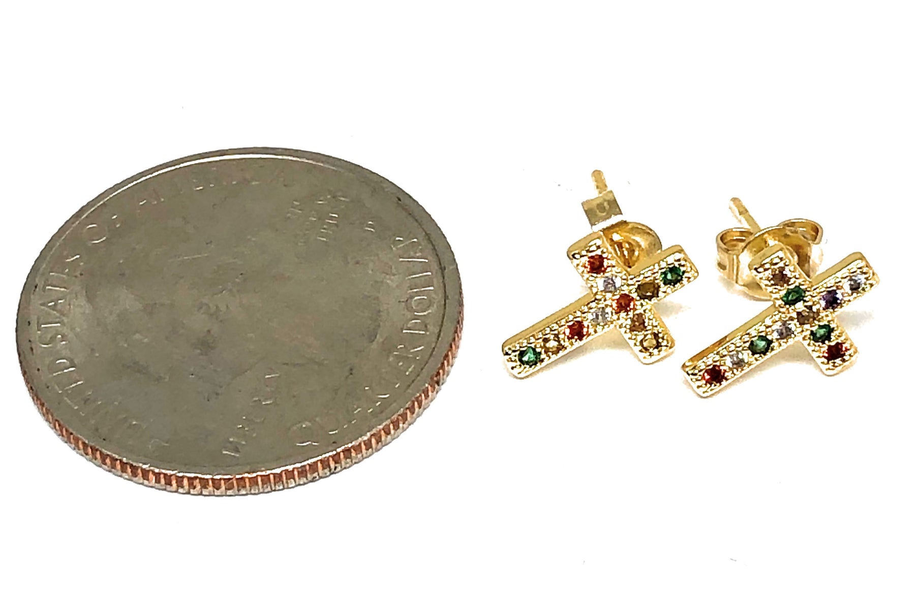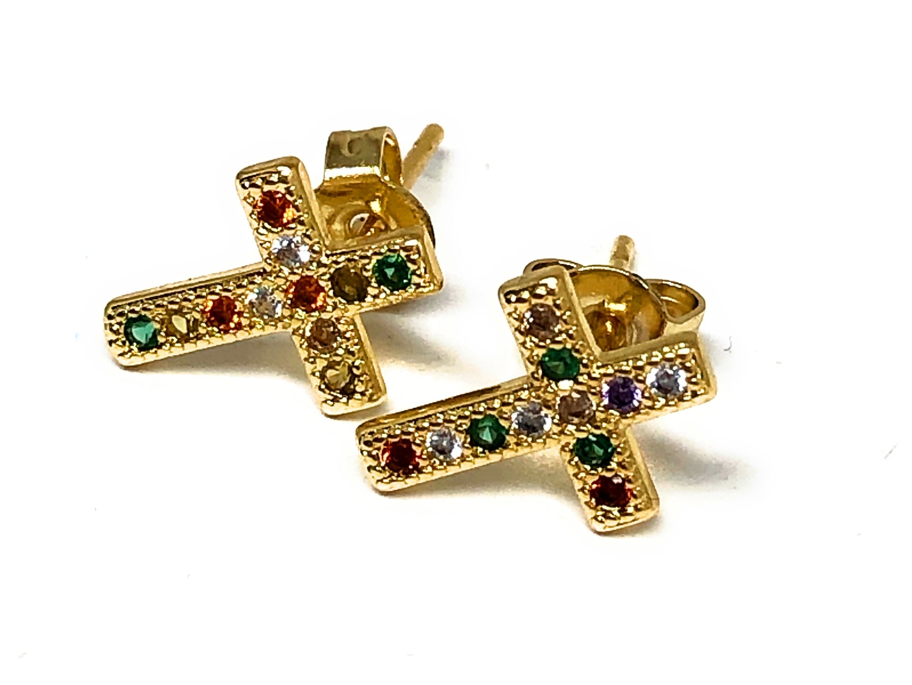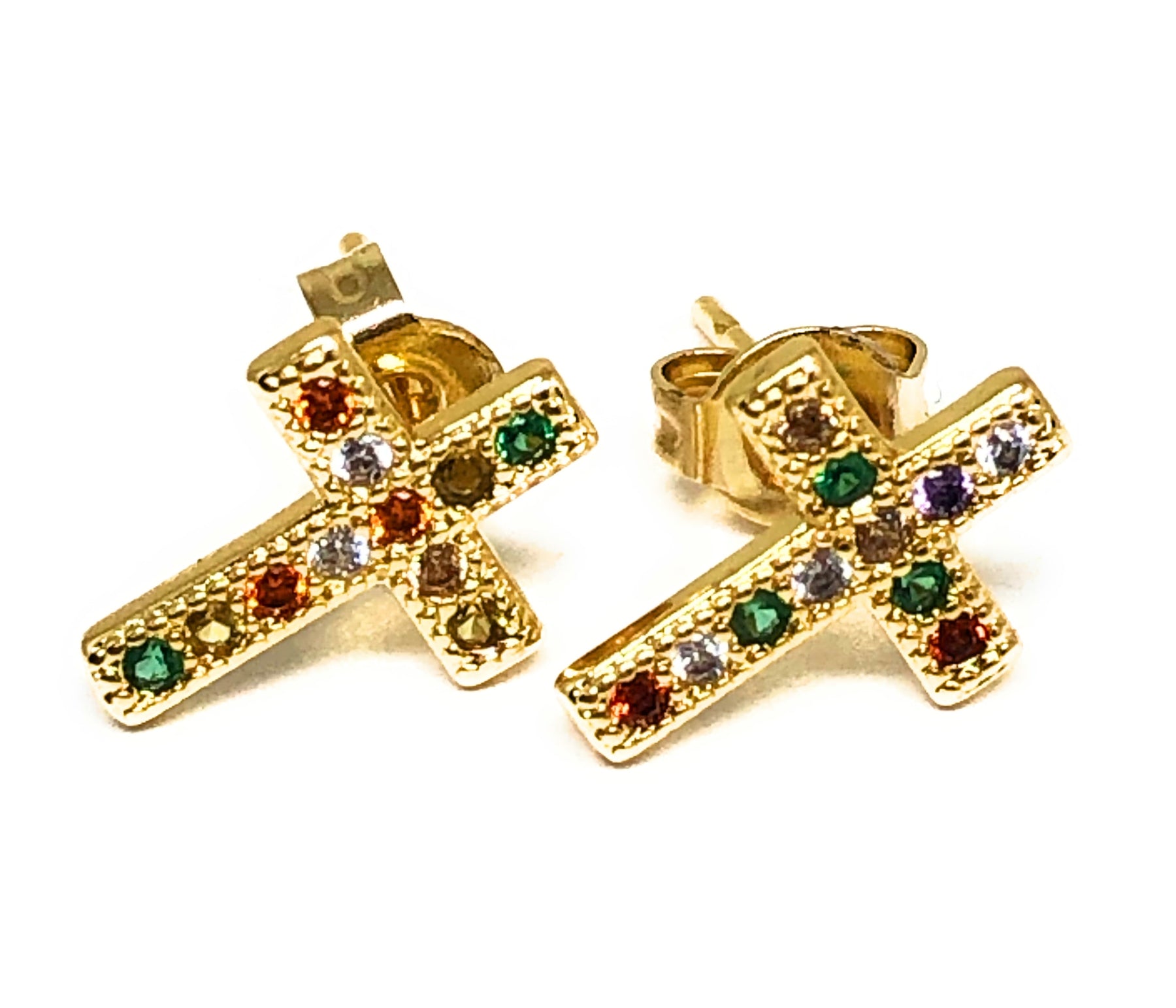 Gold Plated Colorful Cross Earrings w/ Stones Aretes