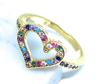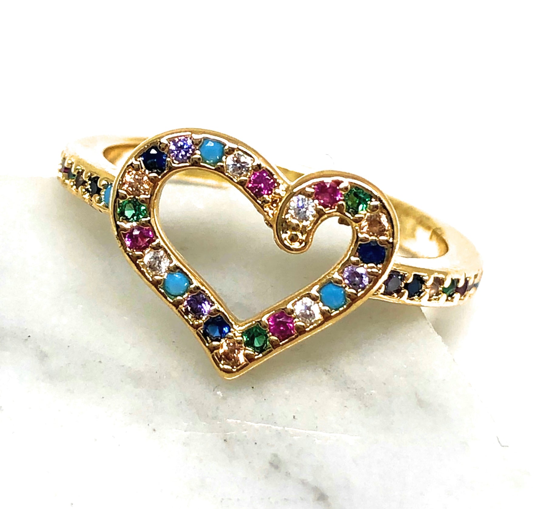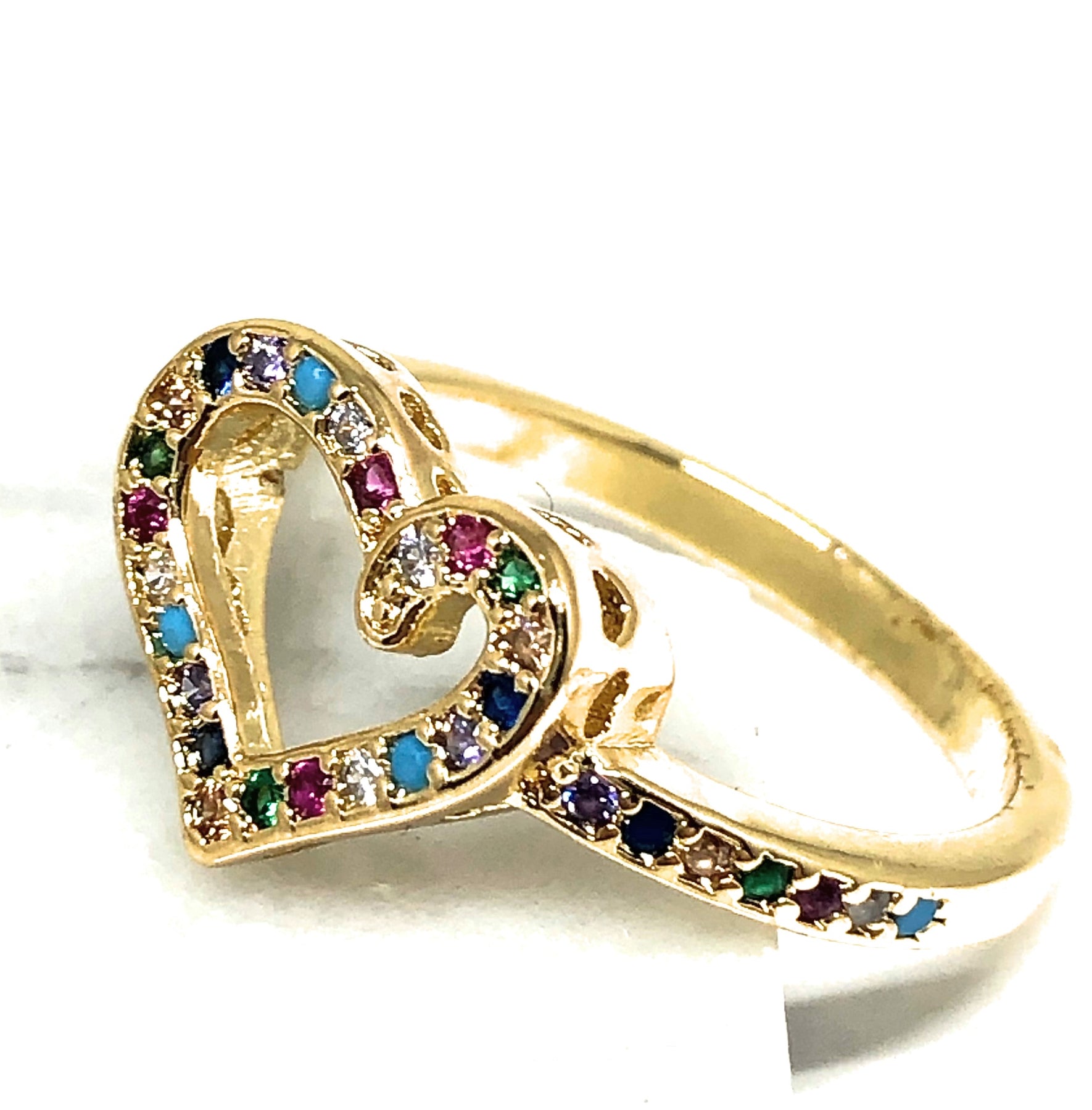 Gold Plated Colorful multi-color Stone Heart Ring Anillo