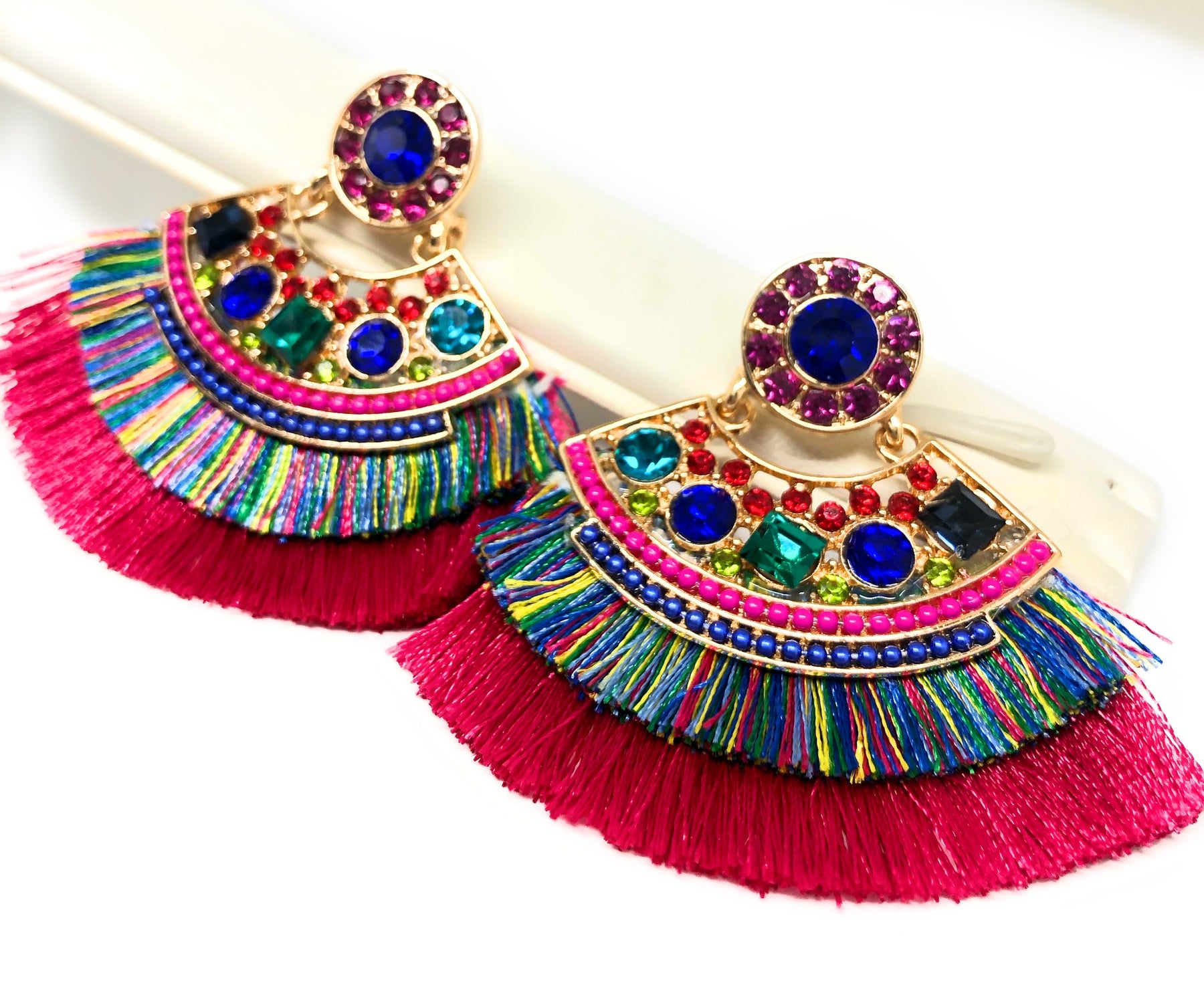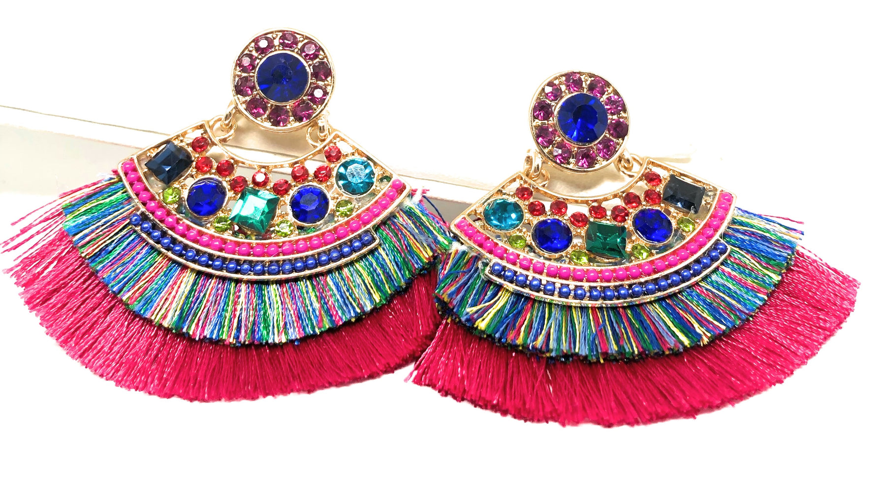 • Beautiful colorful design with rhinestone and feathering folkloric design.