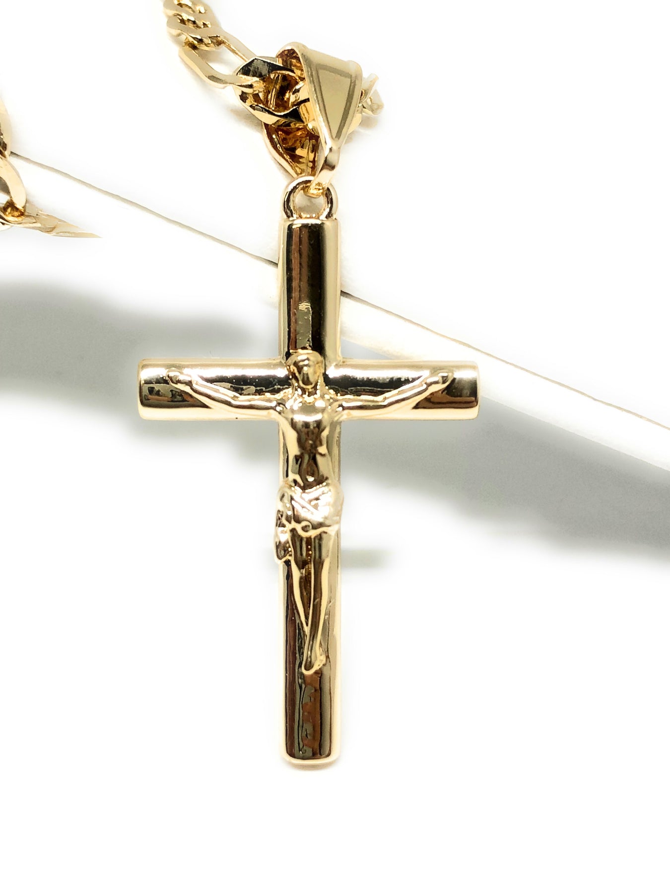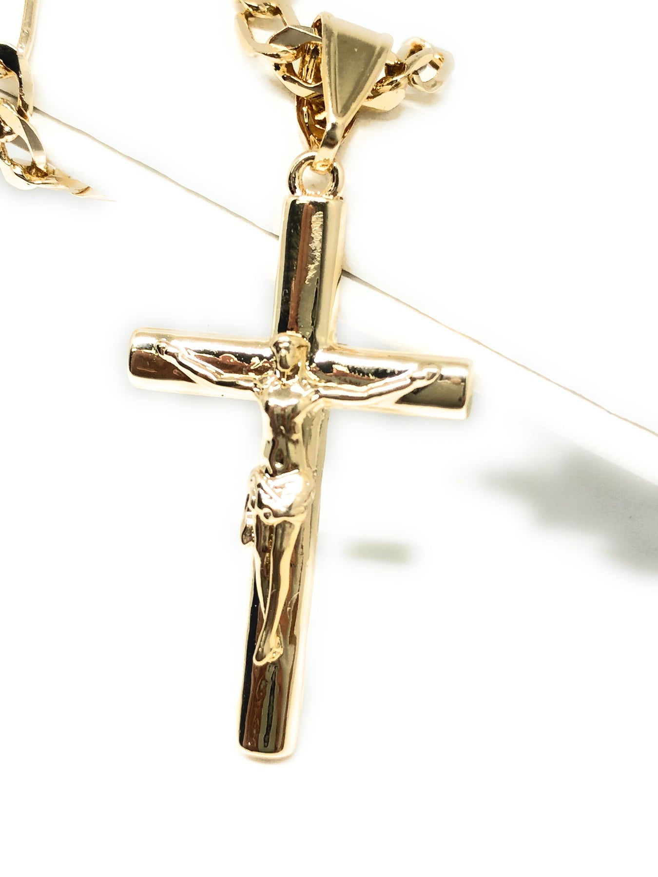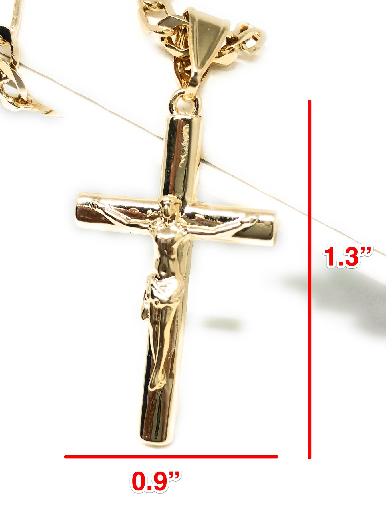 Gold Plated Cross Jesus Crucifix 24" Chain / Jesus Cruz Crucifijo Cadena Oro Lamindo 24”