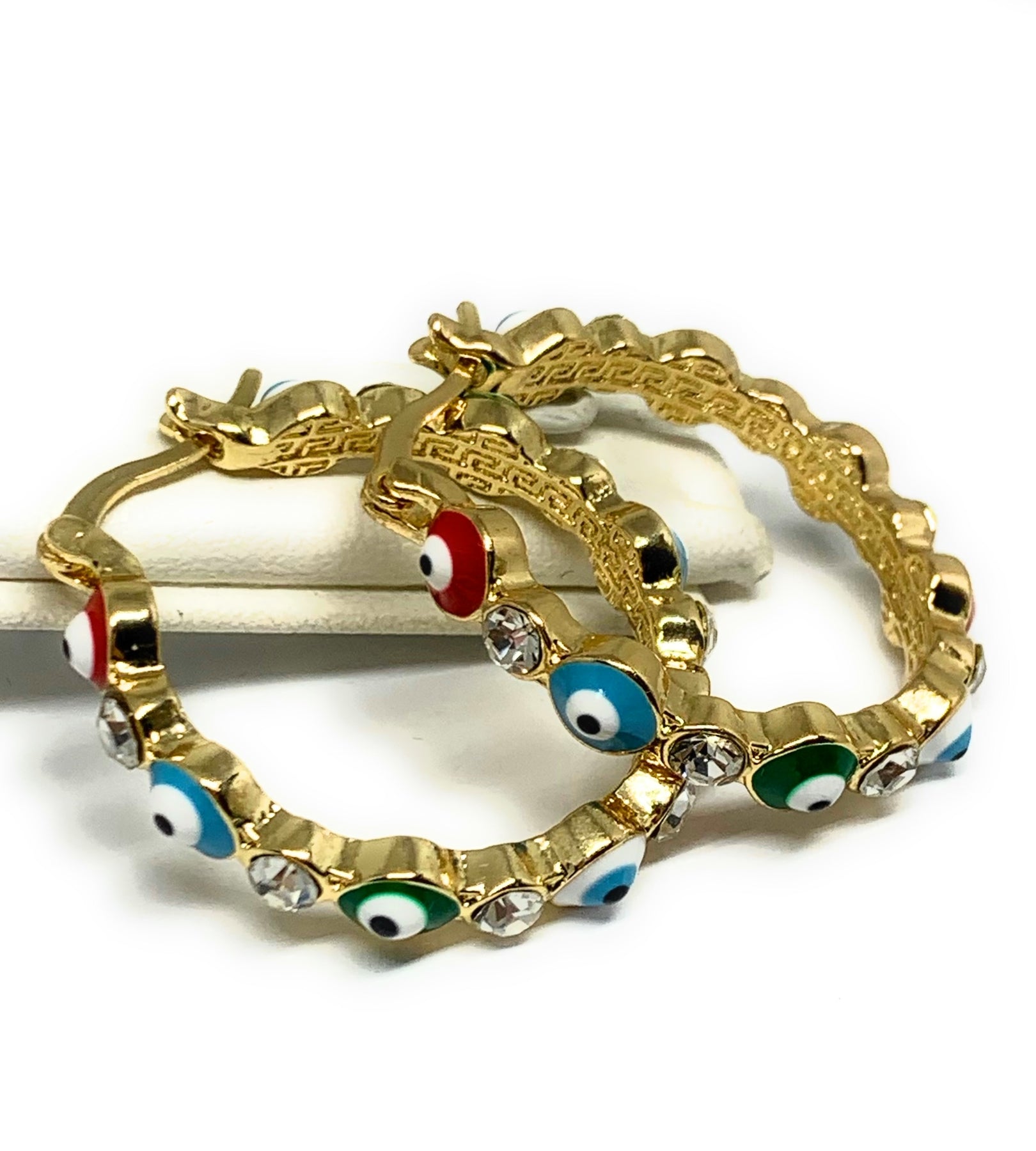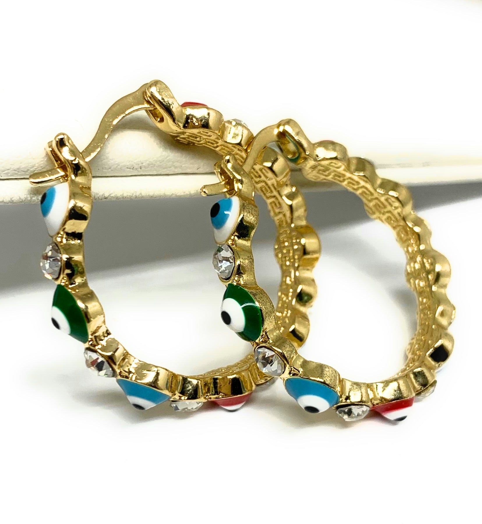 • MULTI-COLOR classic EVIL EYE design and look for hoop earrings.