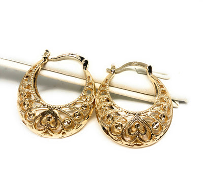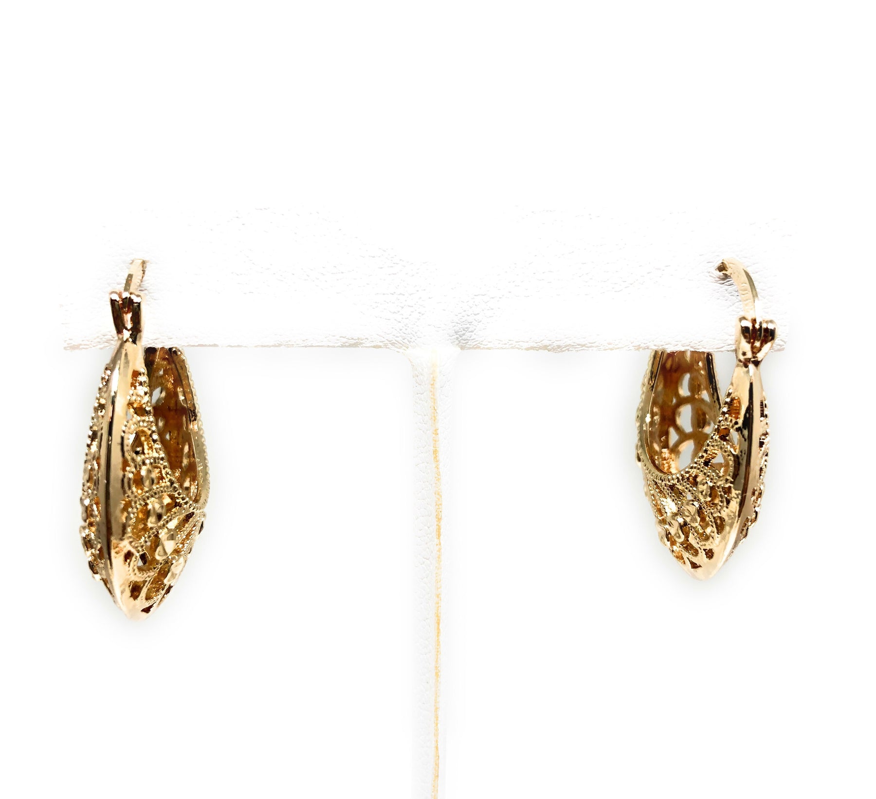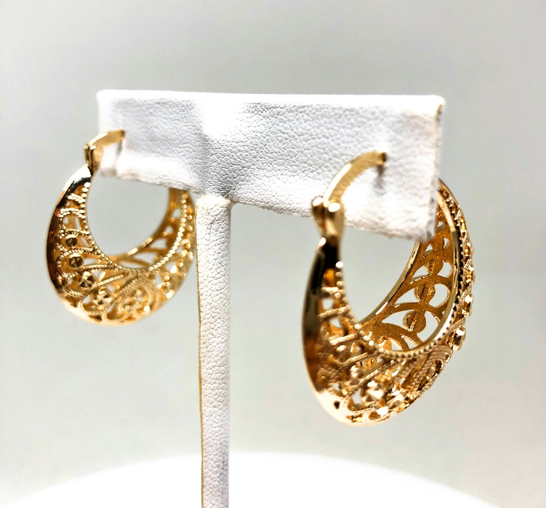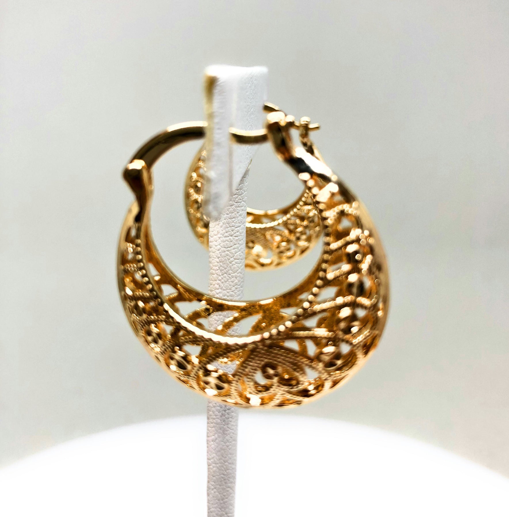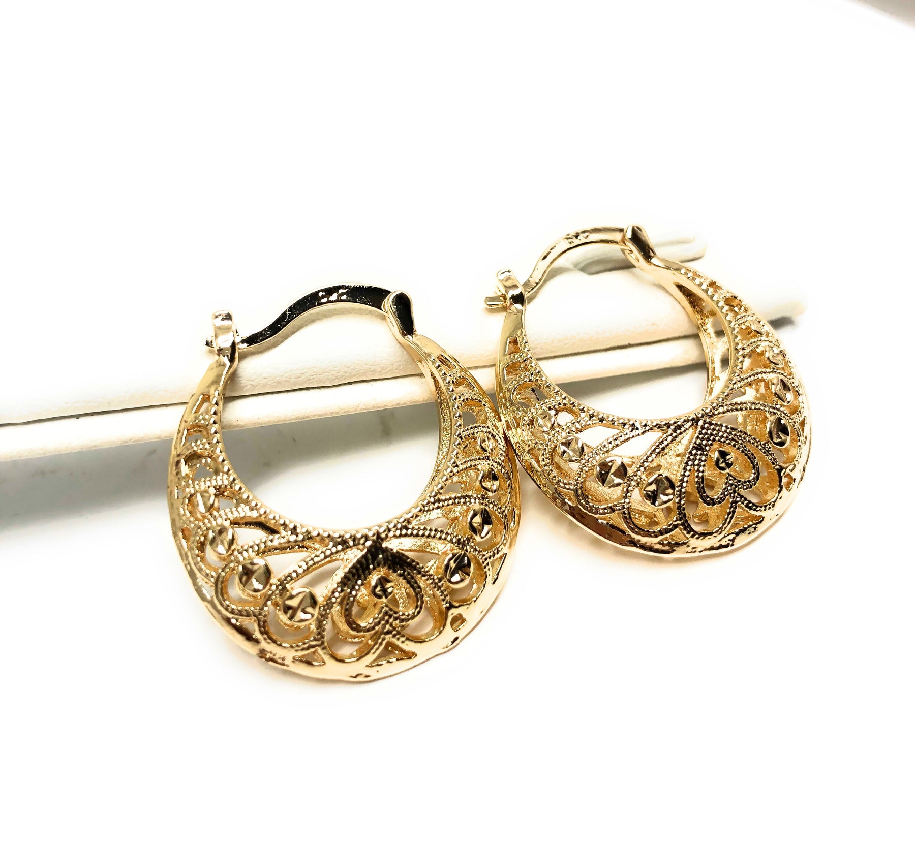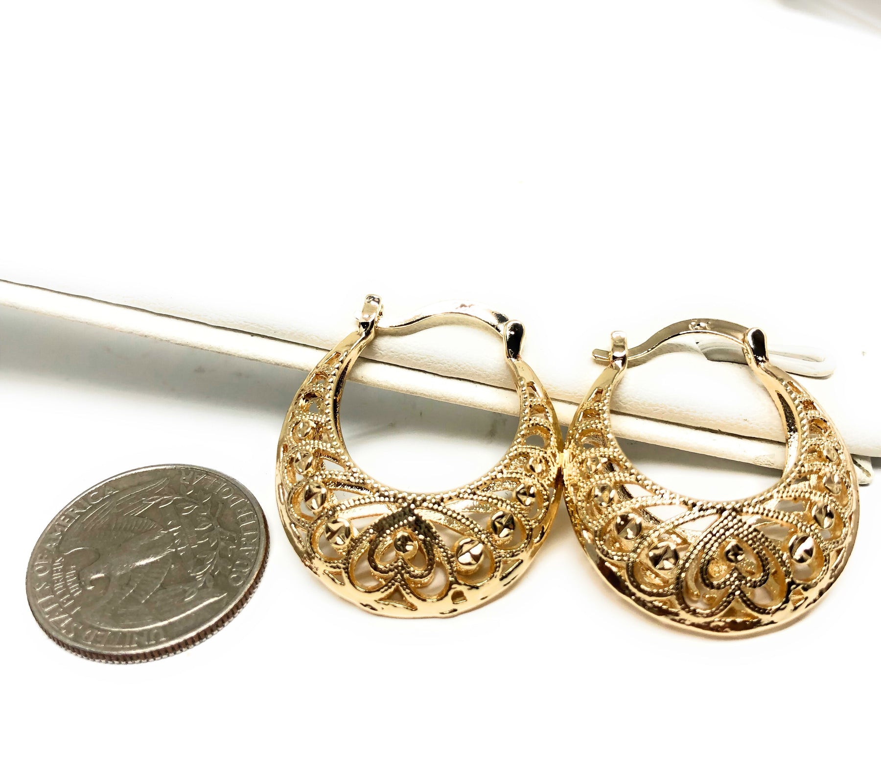 Gold Plated Filigrana Heart Basket Earrings Aretes Canasta Oro laminado