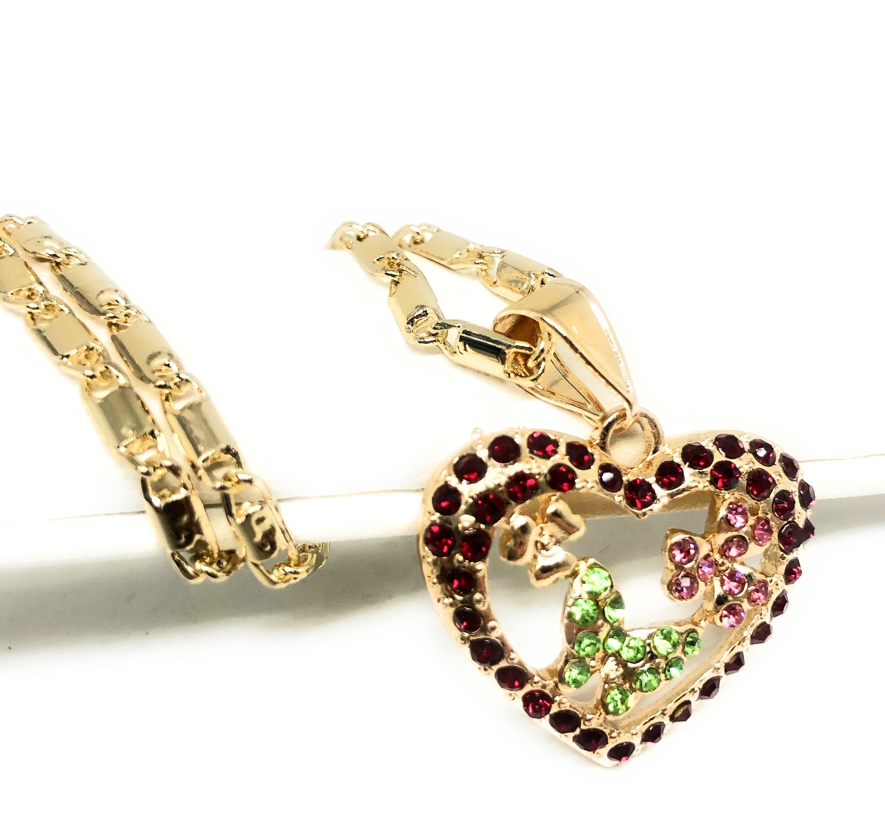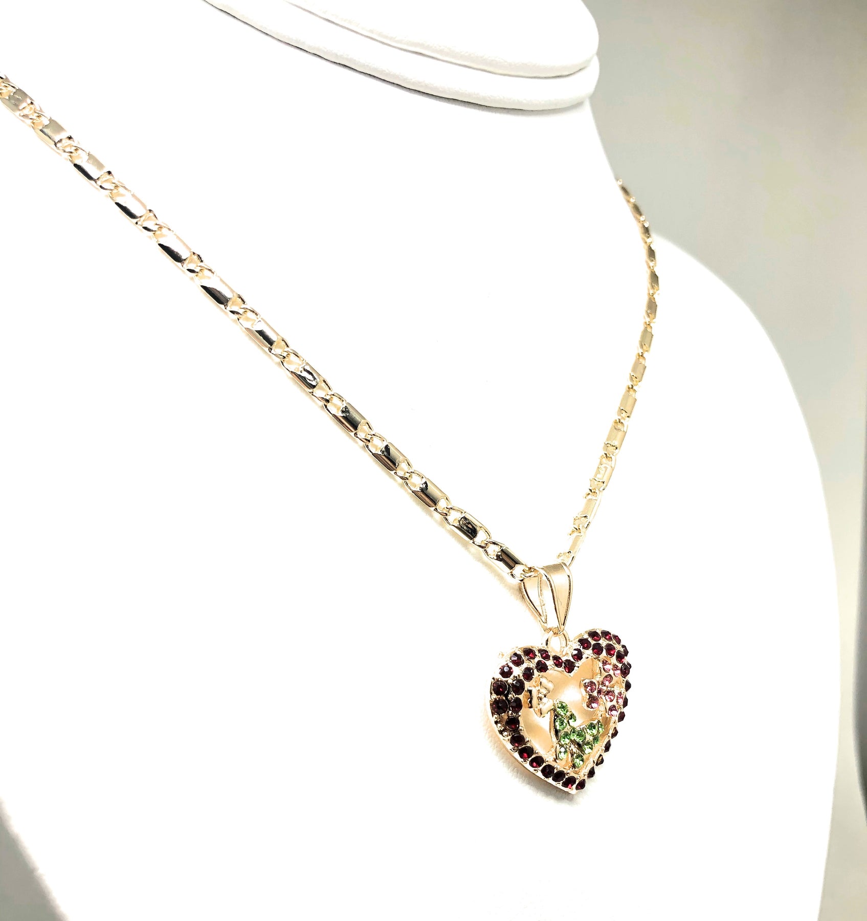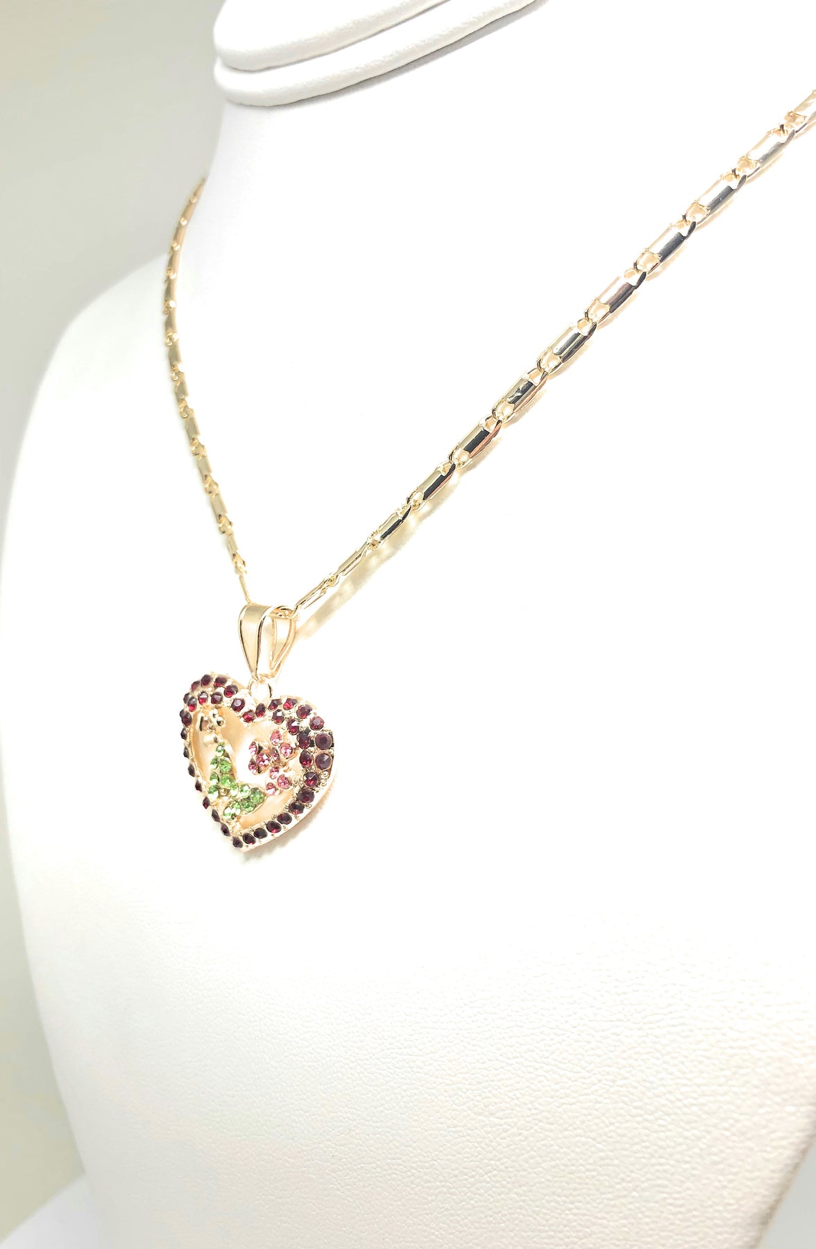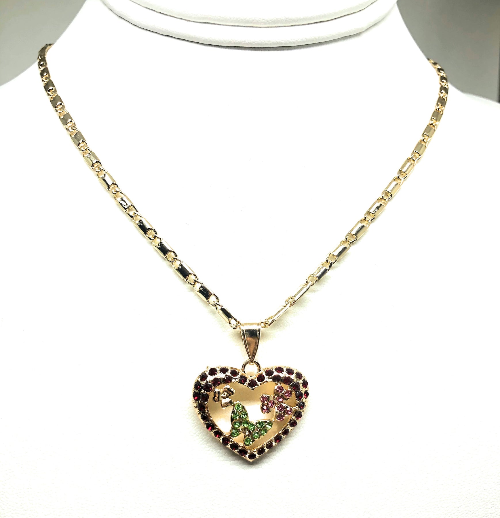 • Heart Shaped Pendant with Butterfly and flower Rhinestones shapes comes with 24 inch Valentina chain with 4mm width.