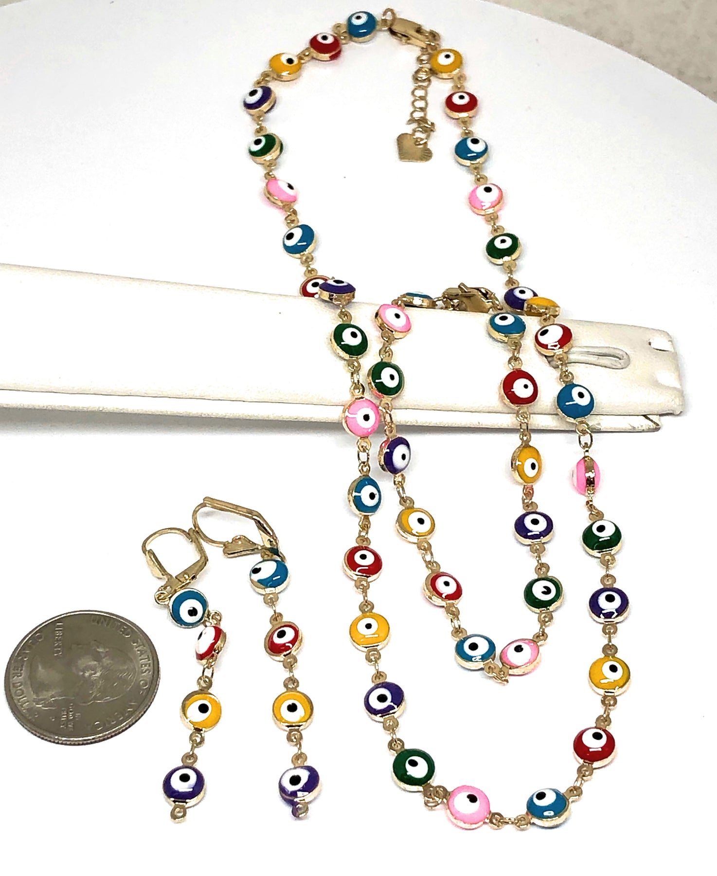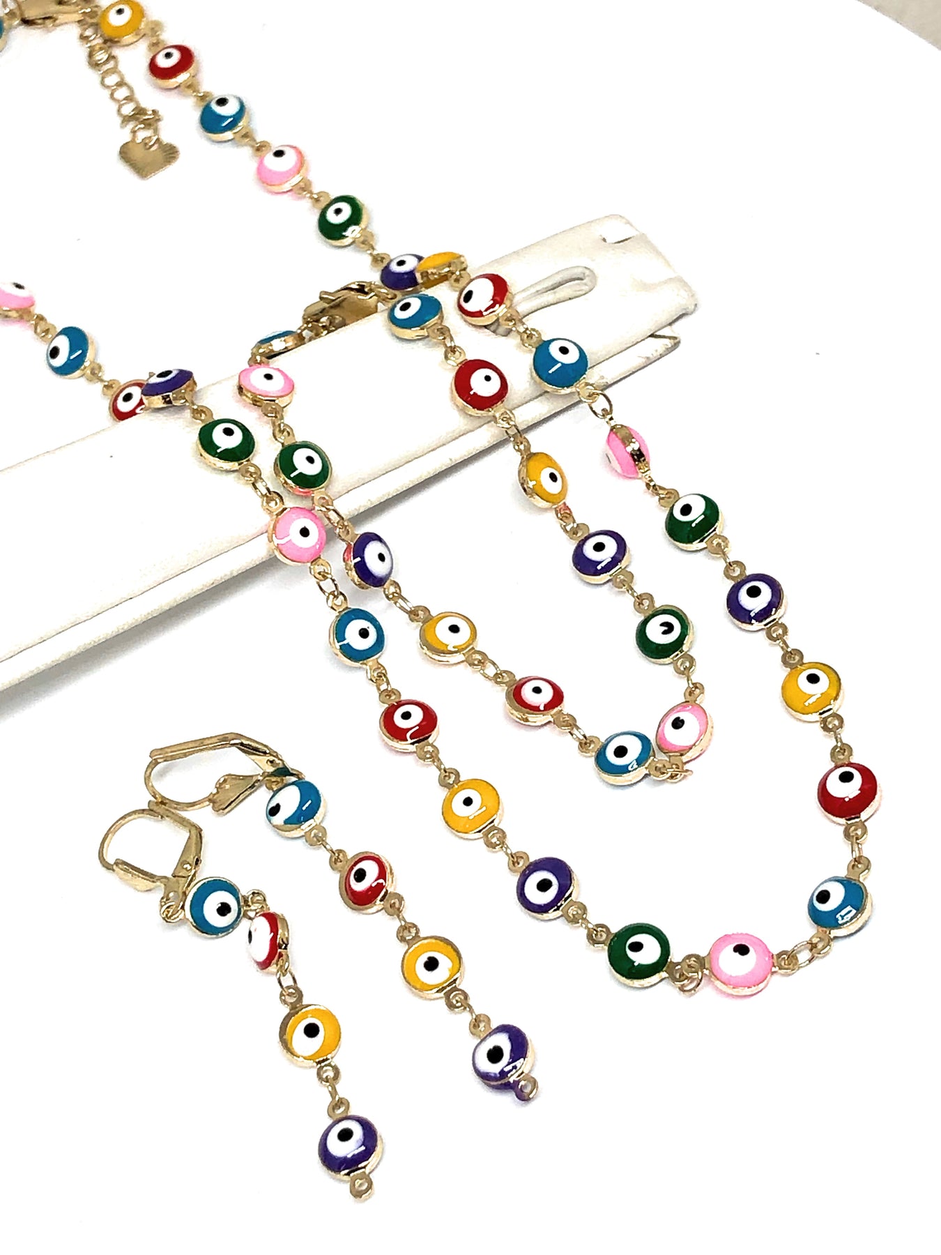 Gold Plated MULTI-COLOR EVIL EYE SET (NECKLACE, BRACELET, EARRINGS)