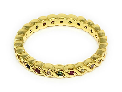 Gold Plated Multi-Color Vibrant CZ Band Ring Anillo