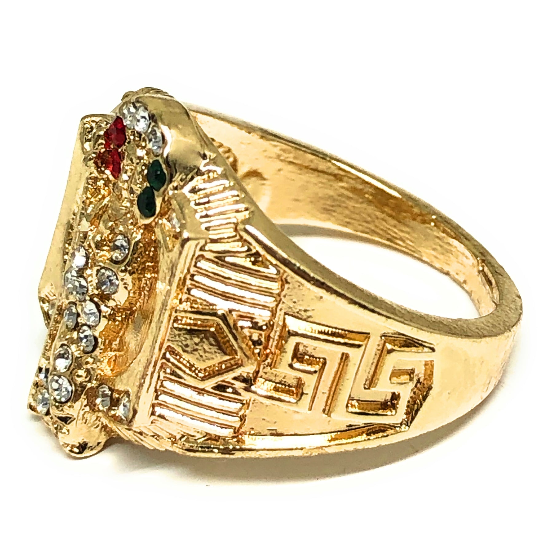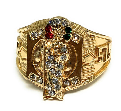 Gold Plated San Judas Saint Jude Red,White,Green CZ Ring Anillo