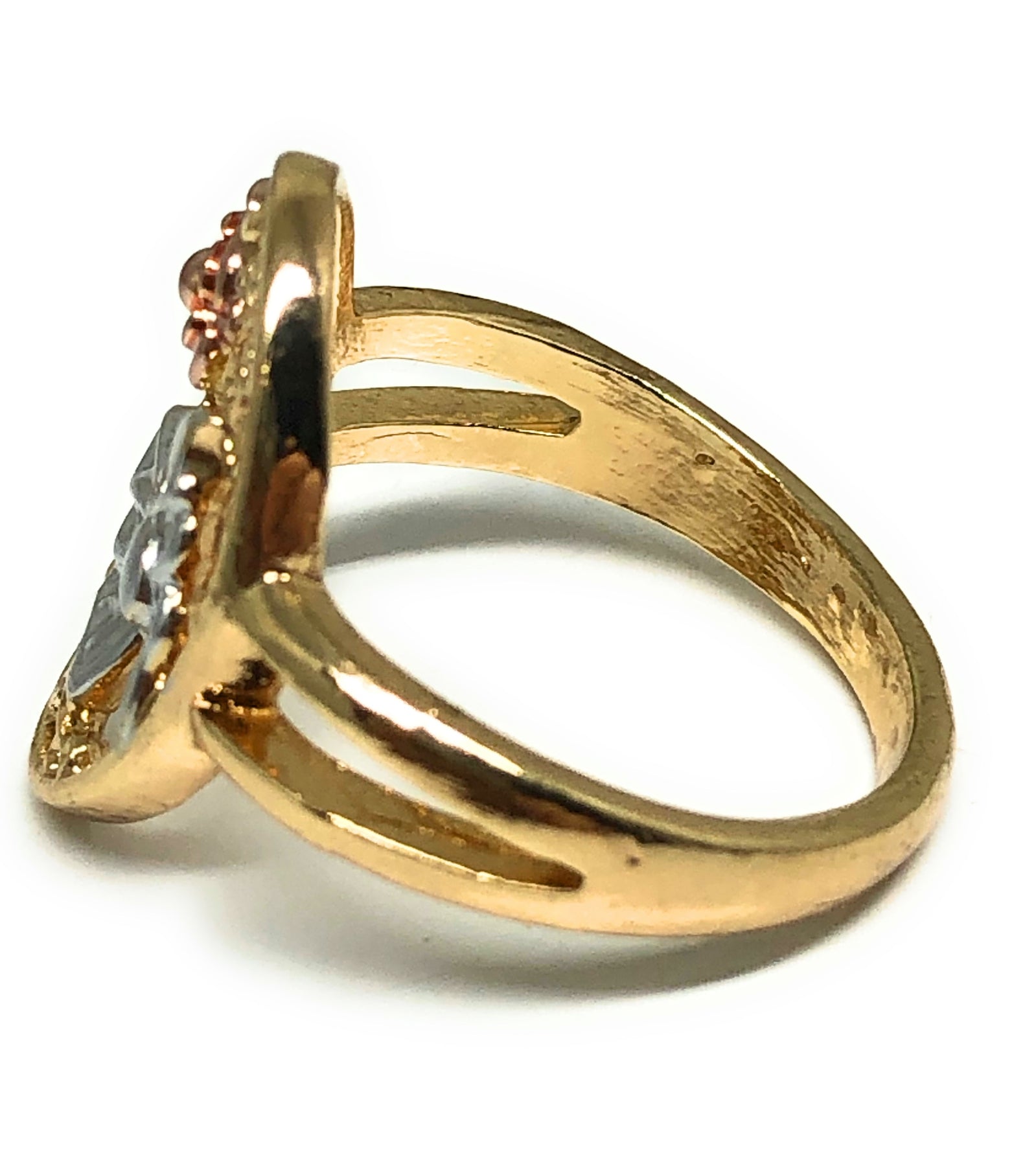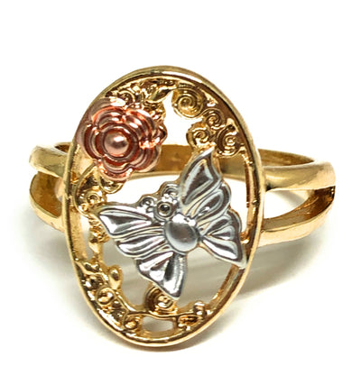 Gold Plated Tri-Color Butterfly Flower Ring Anillo
