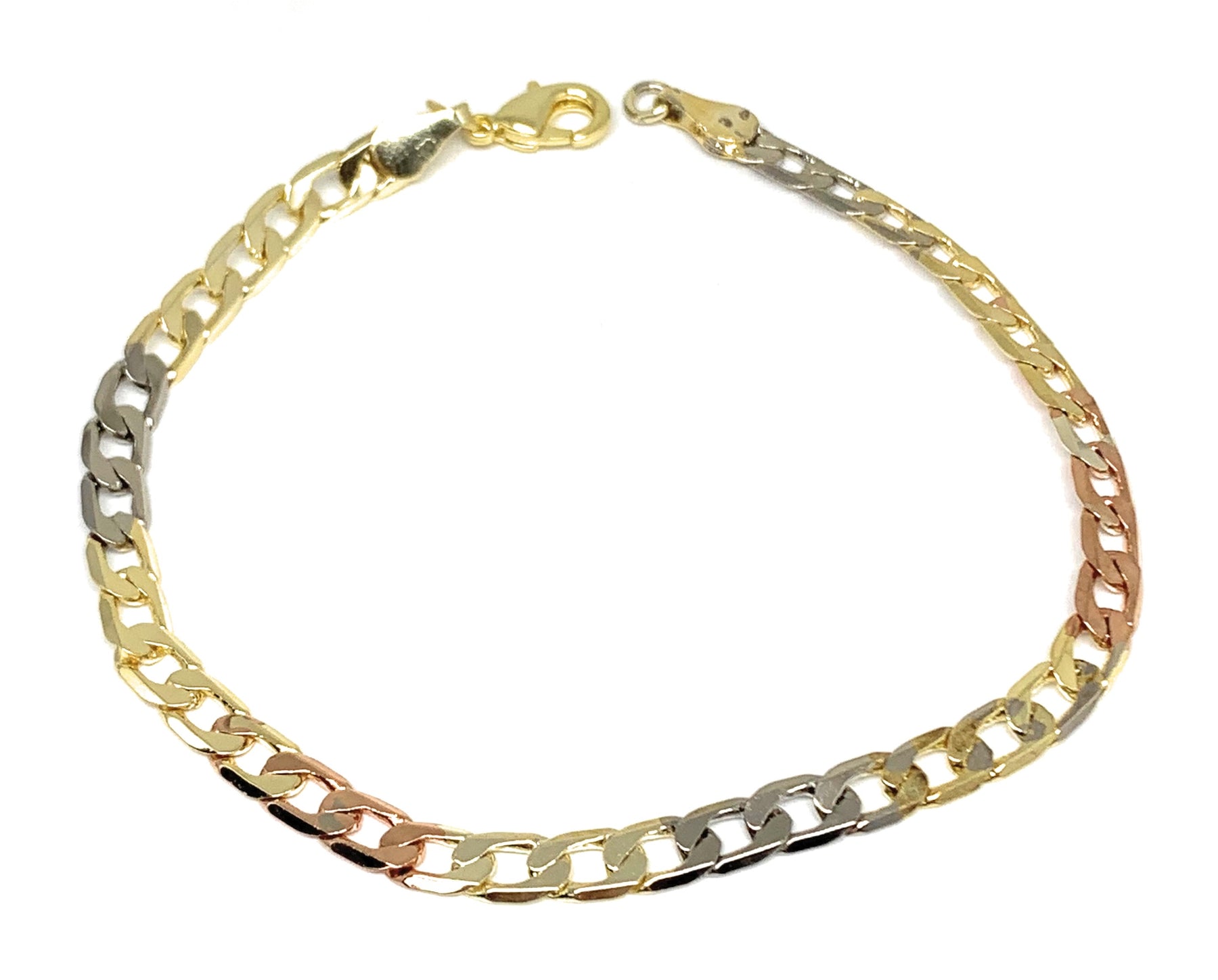 Gold Plated Tri-Color Cuban Link Bracelet 8” 5mm Width Esclava