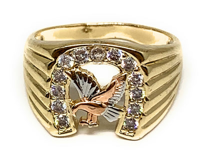 Gold Plated Tri-Color Eagle Horseshoe CZ Ring Anillo