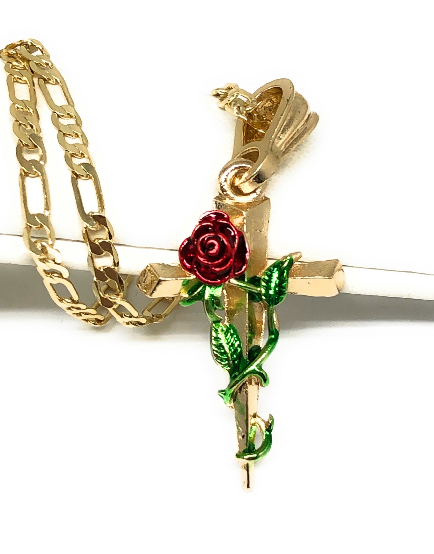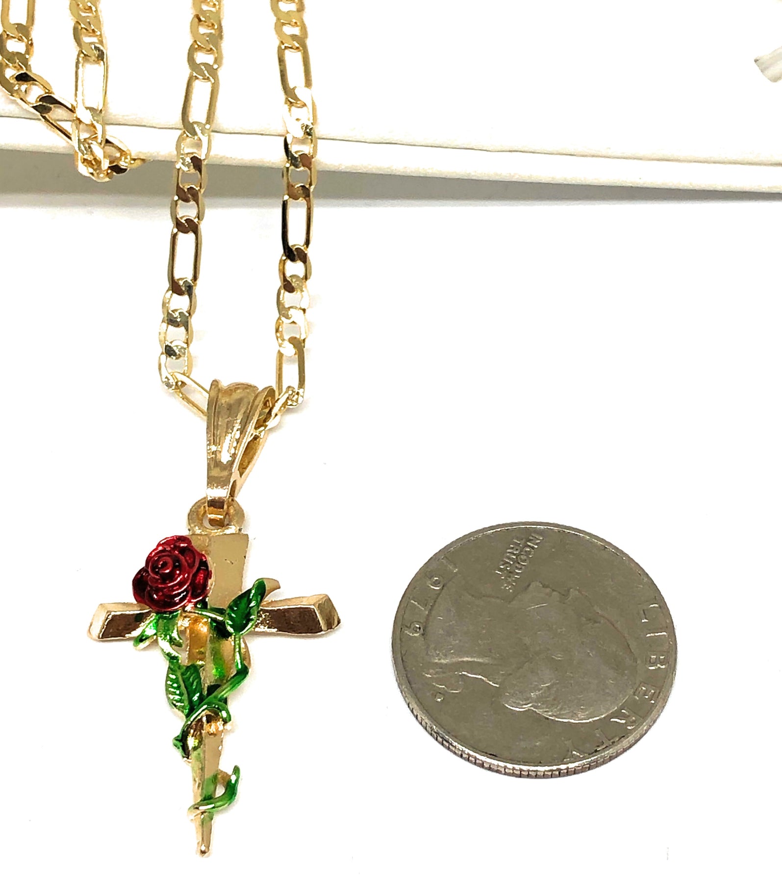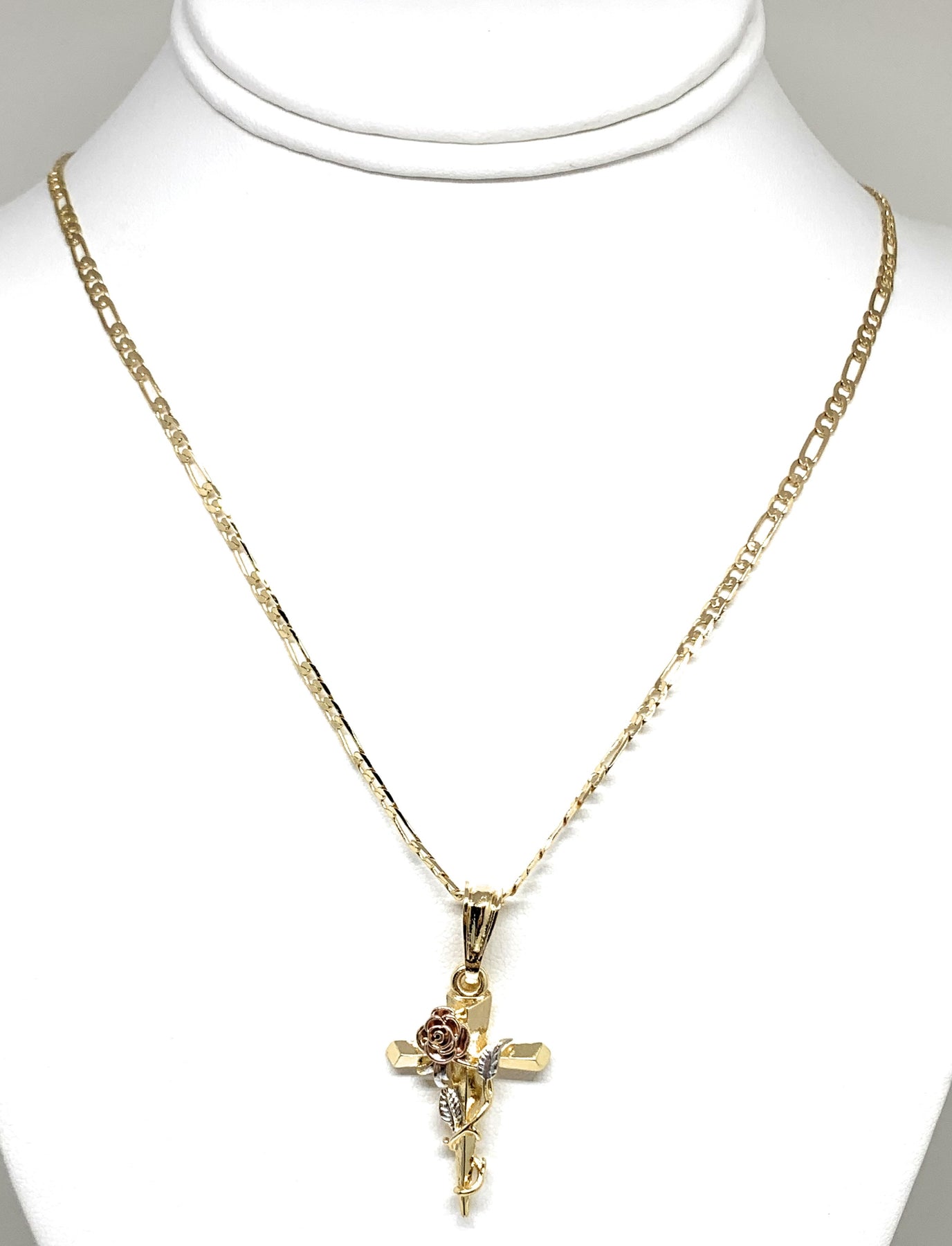 Gold Plated Tri-Color Rose Cross Crucifix 24" Chain Cruz Crucifijo