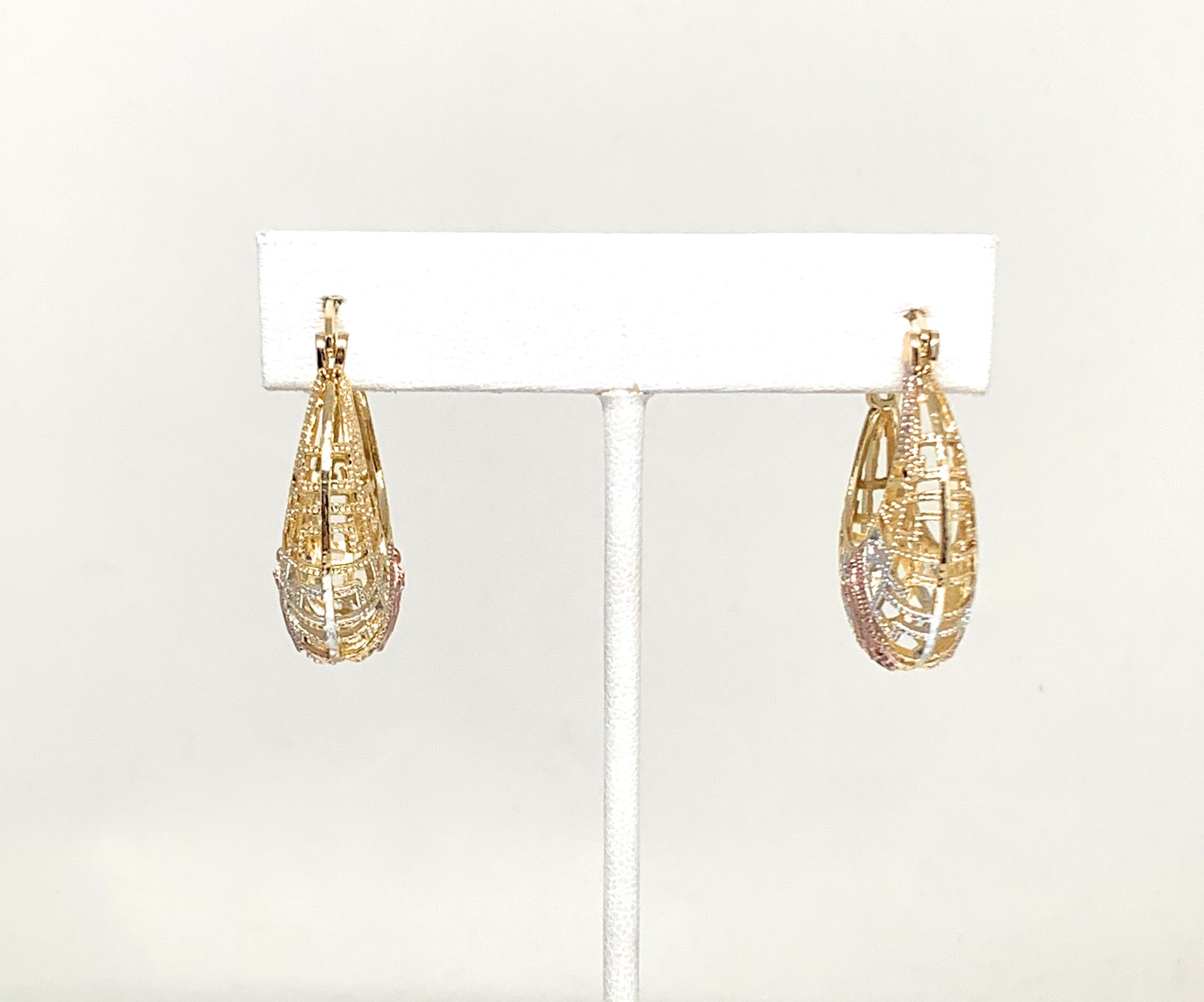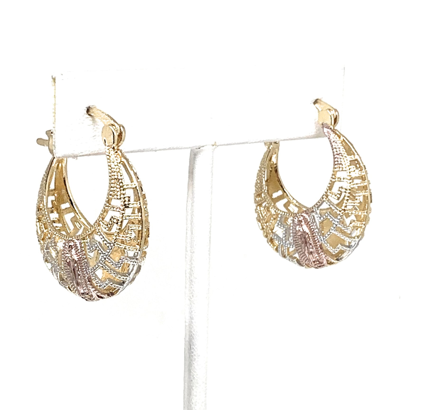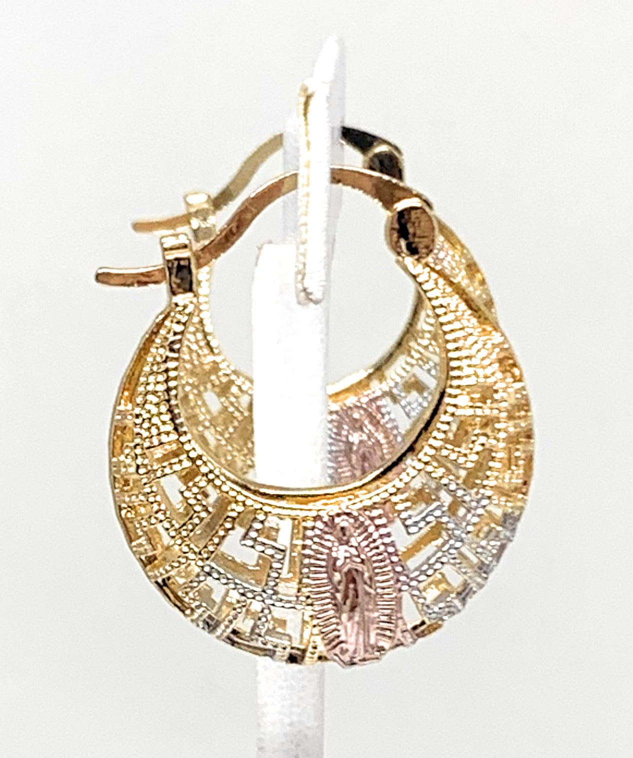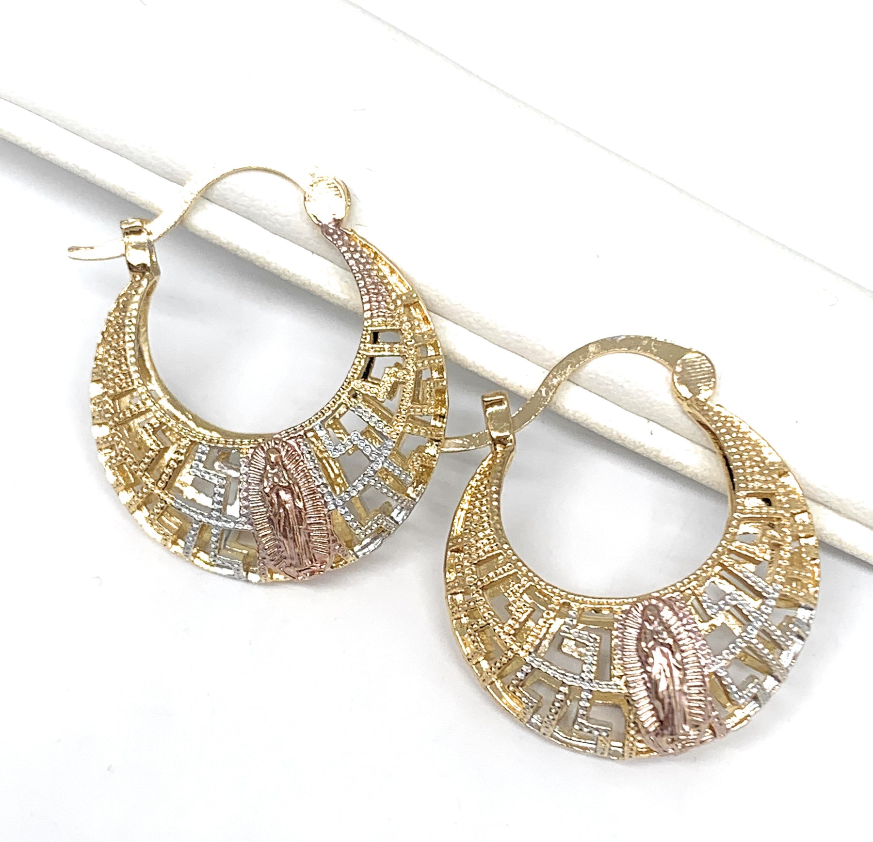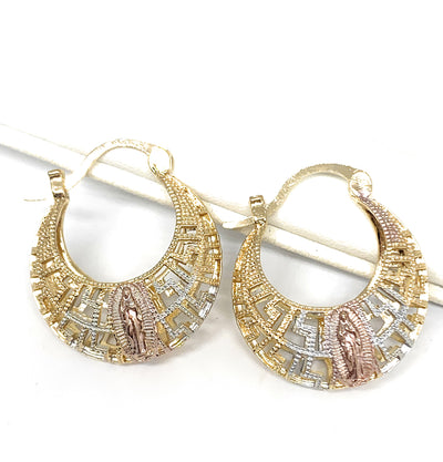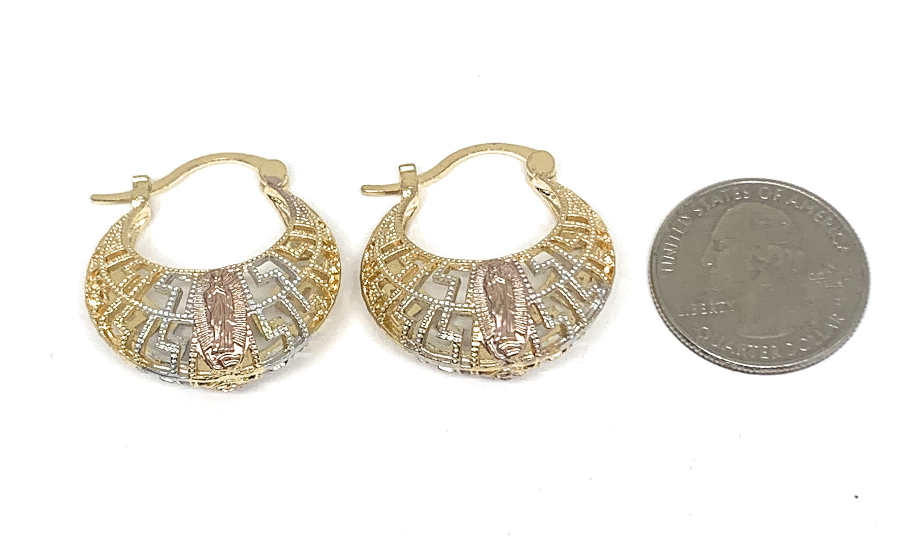 Gold Plated Tri Color Virgin Mary Versace Basket Earrings Virgen Guadalupe Aretes Canasta Tres Colores