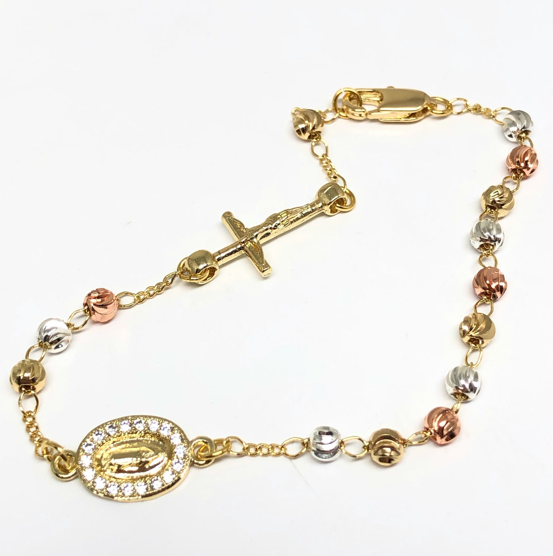 - Beautifully designed and crafted tri-color virigin mary bracelet.