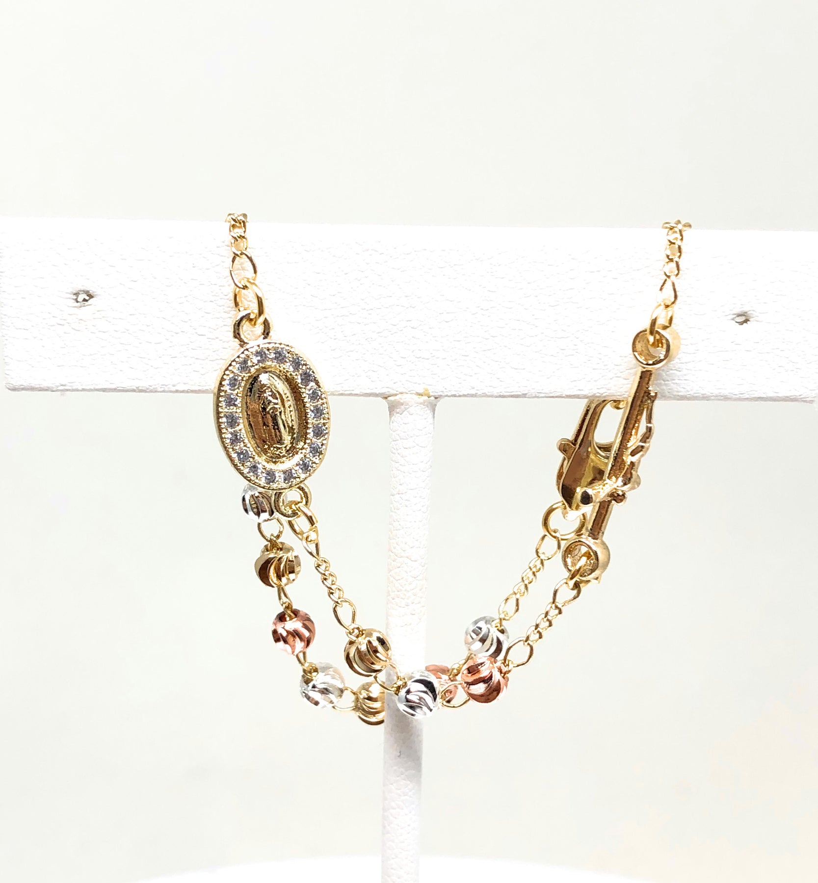 Gold Plated Tri-Color Virgin Mary Bracelet Virgen De Guadalupe Pulsera Tres Colores 8”