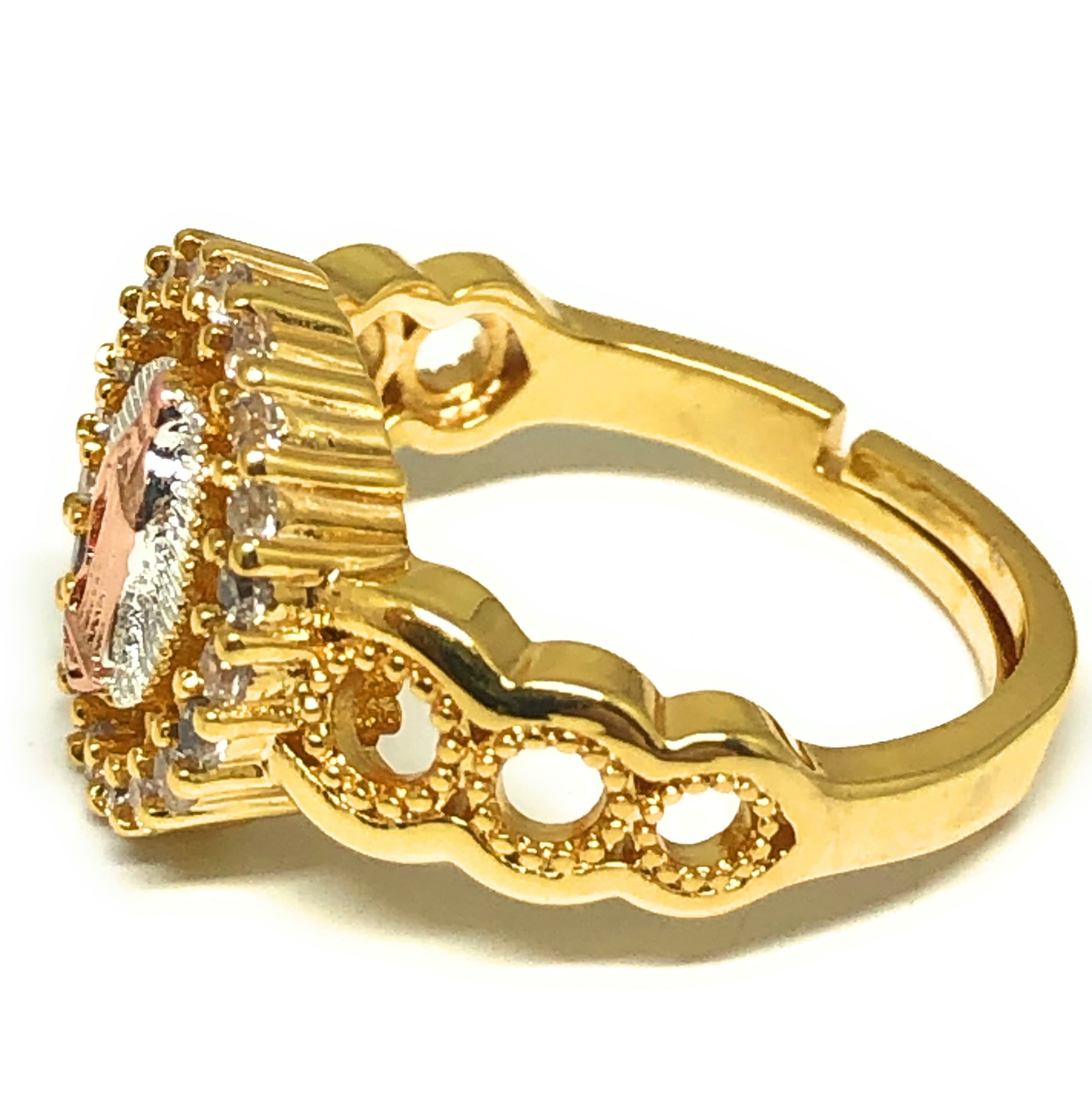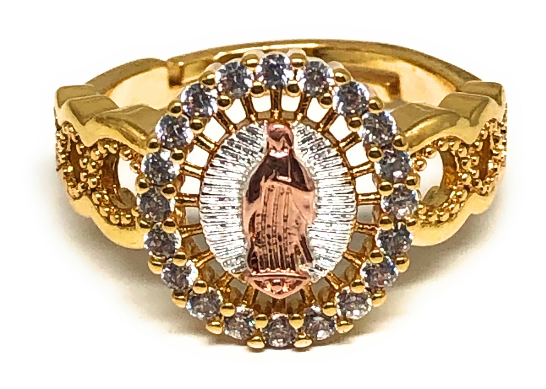 Gold Plated Tri-Color Virgin Mary CZ Ring Virgen Guadalupe Anillo Adjustable Sizes (5-12)