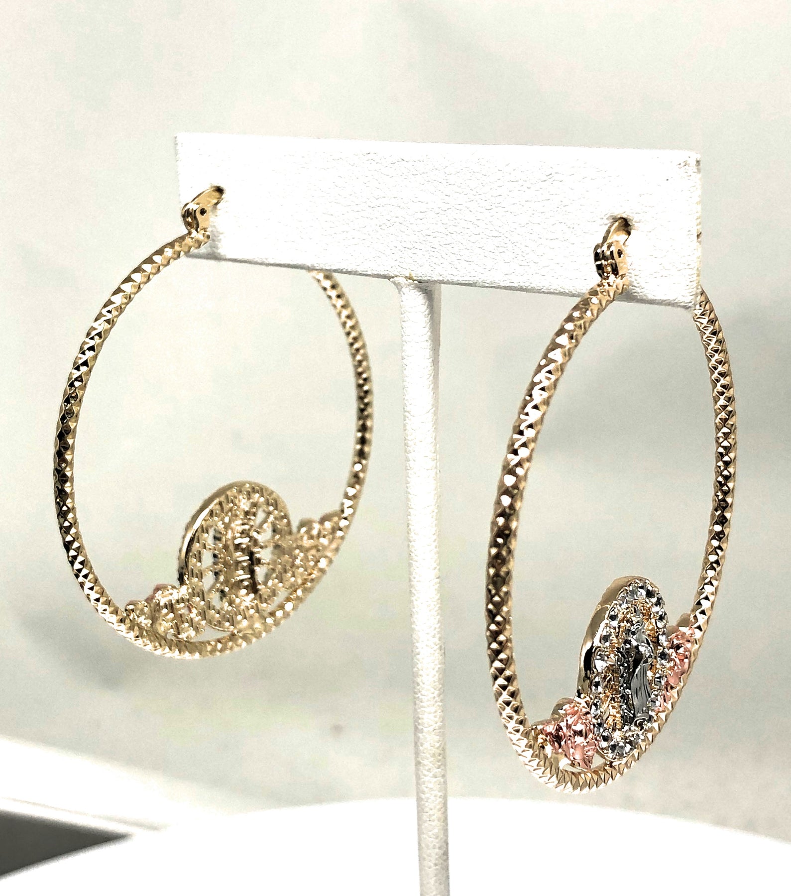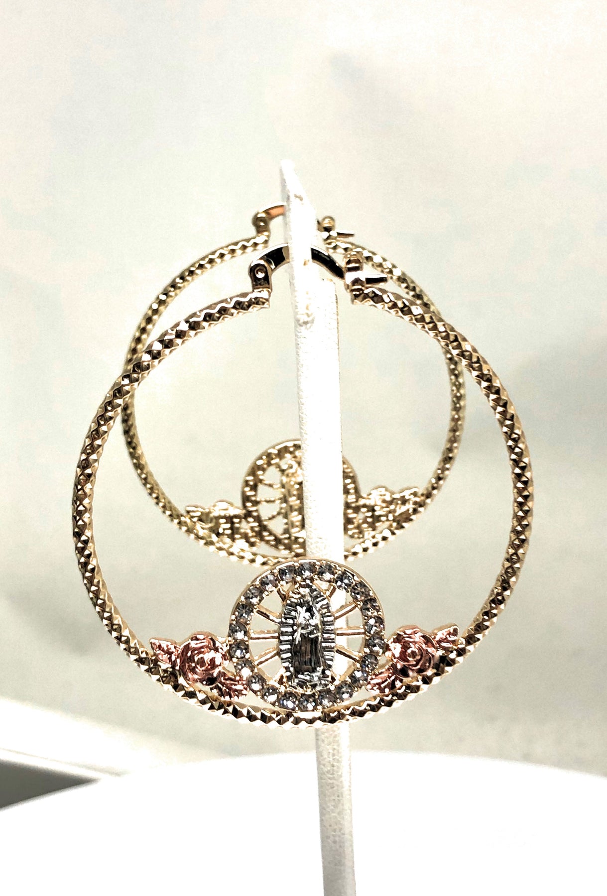 The classic Virgin Mary depiction is displayed with beautiful attention to detail and designed to look identical to the original Italian 14 karat gold version. The earrings are beautifully designed with vibrant colors and textures that makes the image come out and has everything you would want in Virgin Mary earrings.