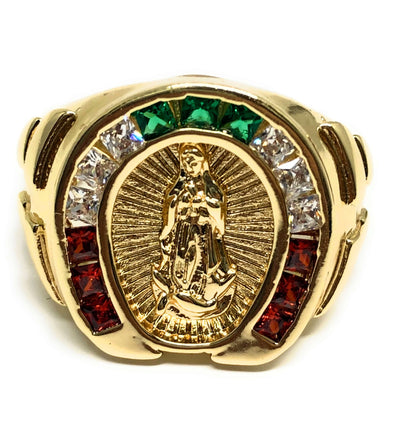 Gold Plated Virgin Mary Color Stone Ring Virgen De Guadalupe Anillo