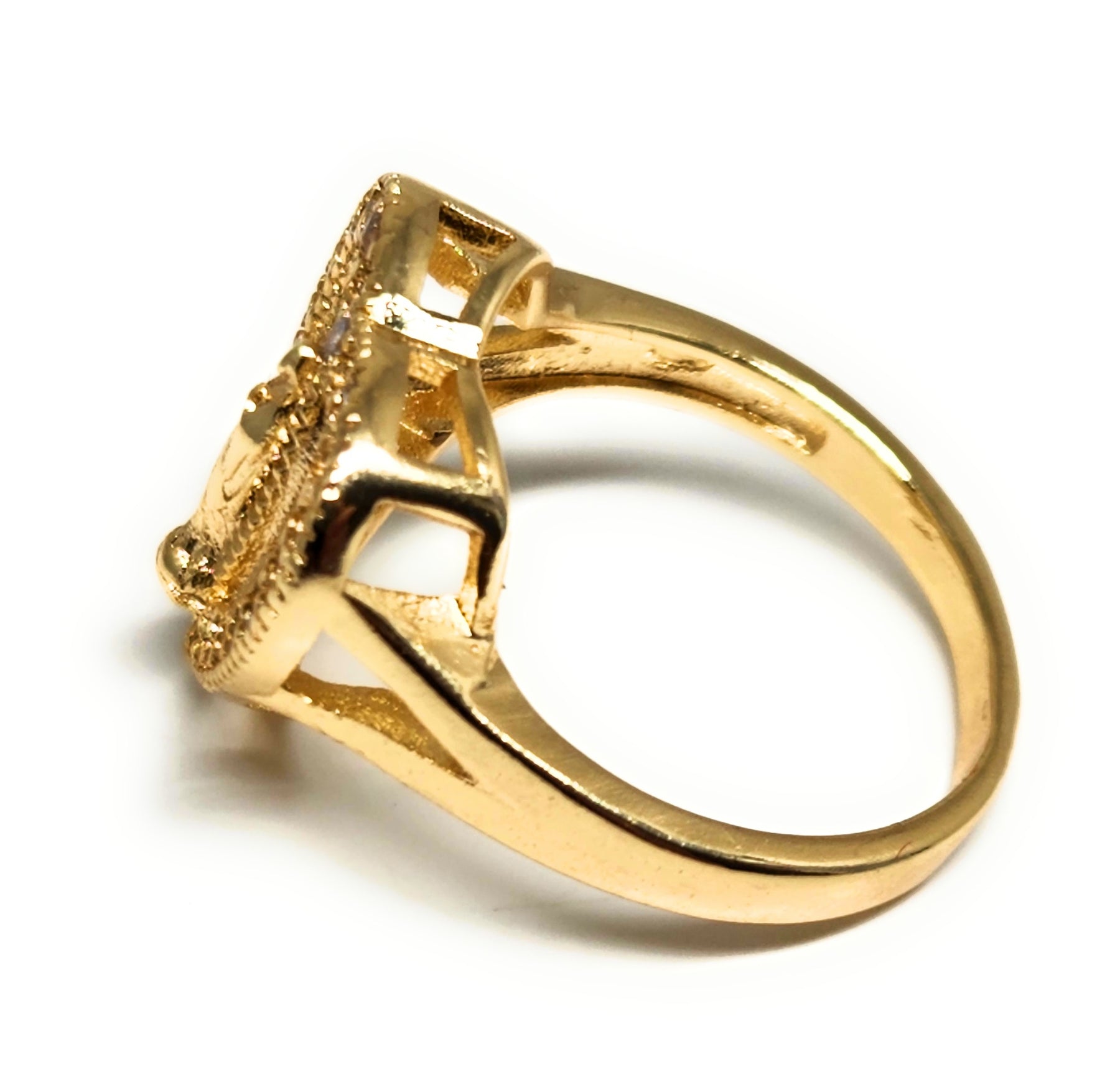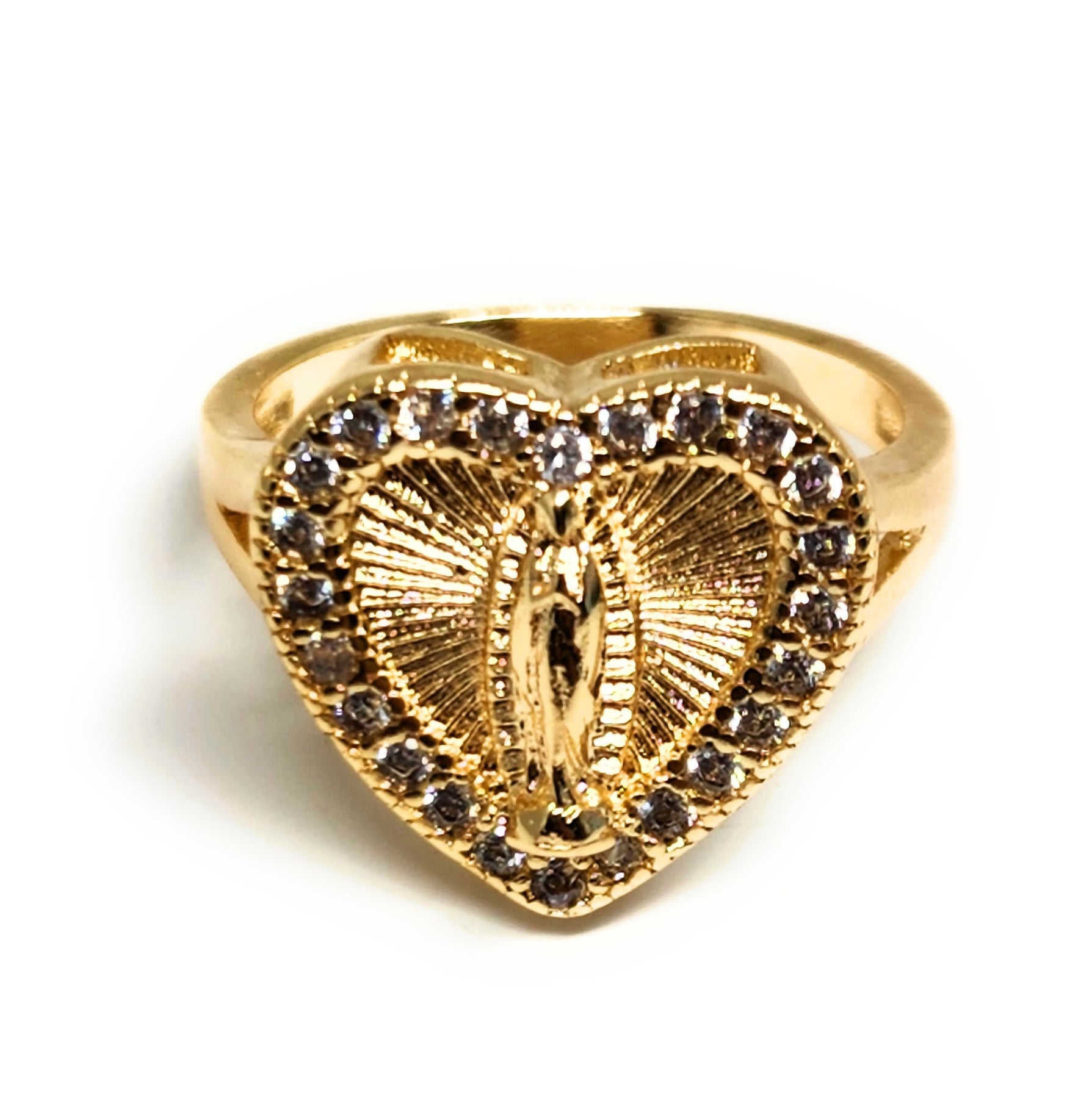 Gold Plated Virgin Mary Heart CZ Ring Virgen Guadalupe Anillo Corazón