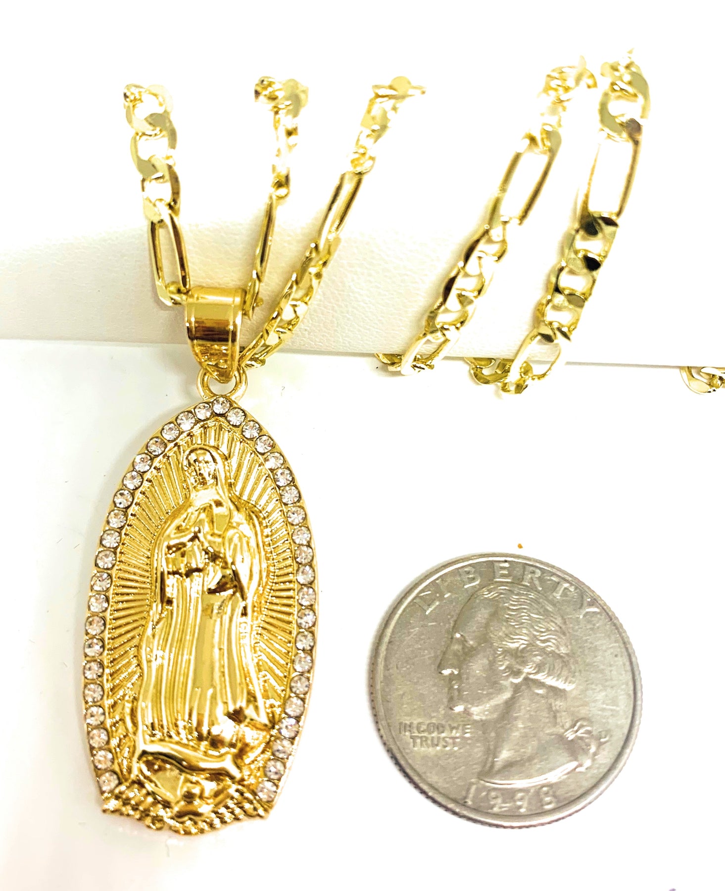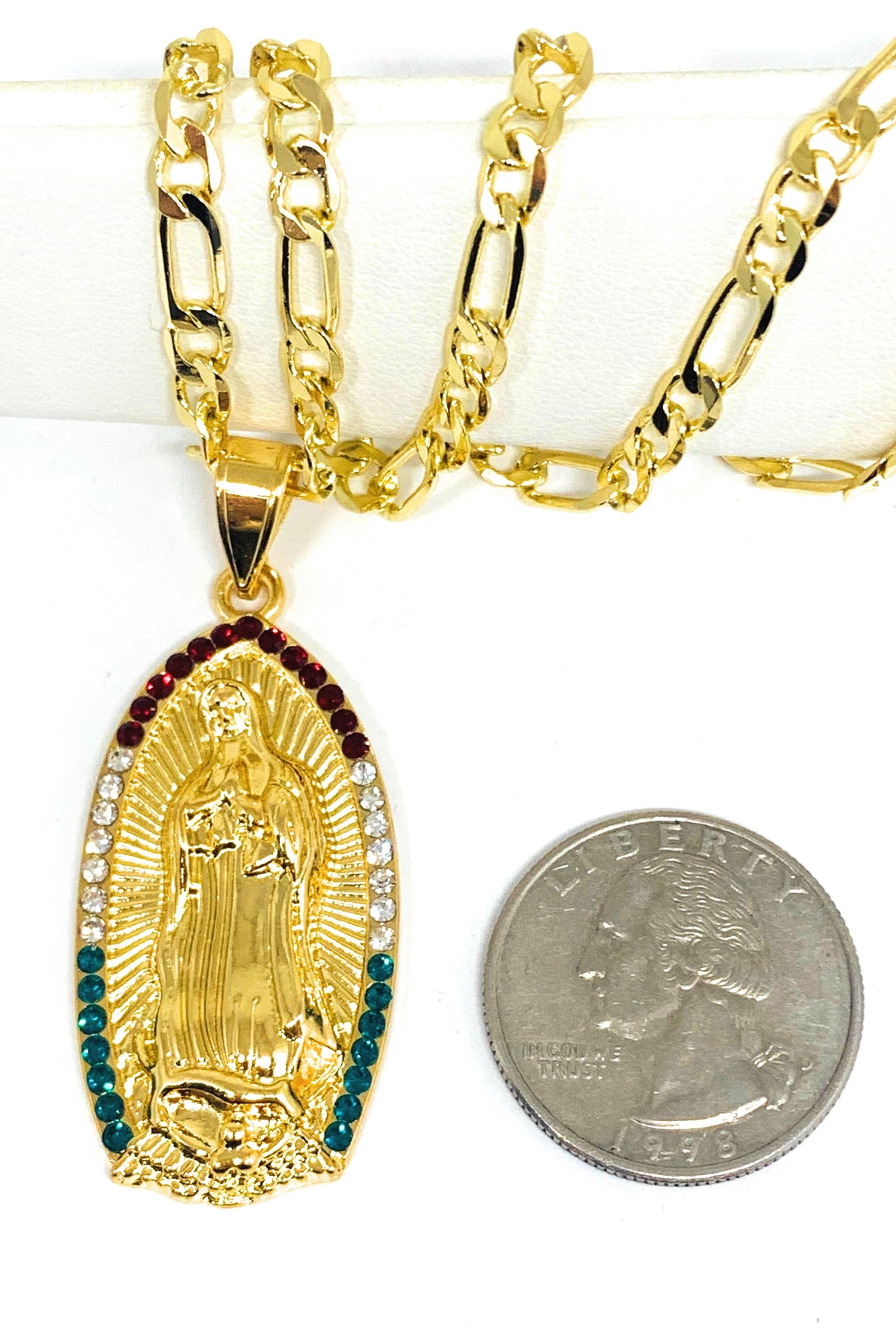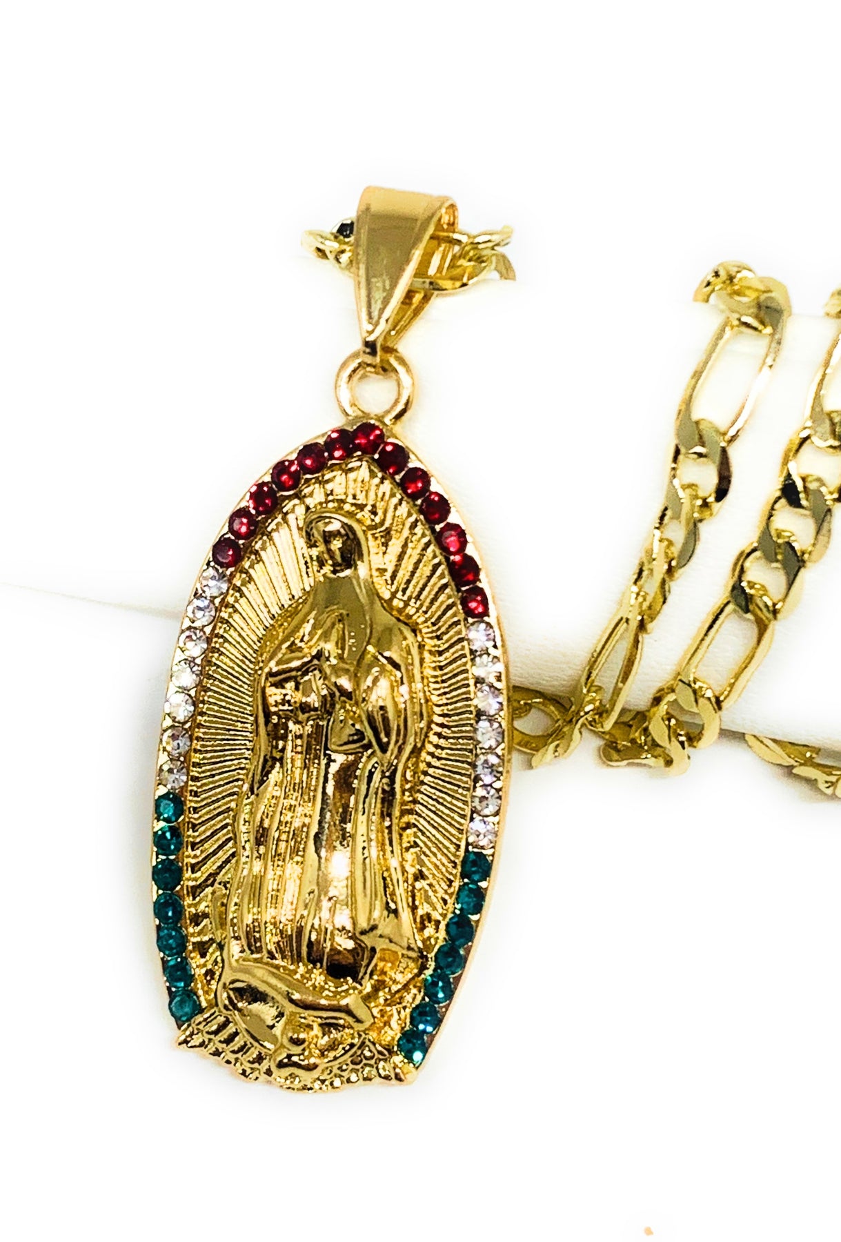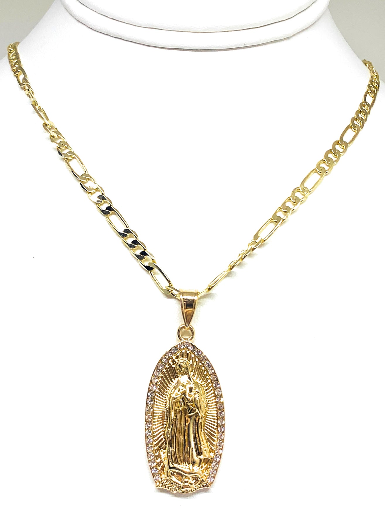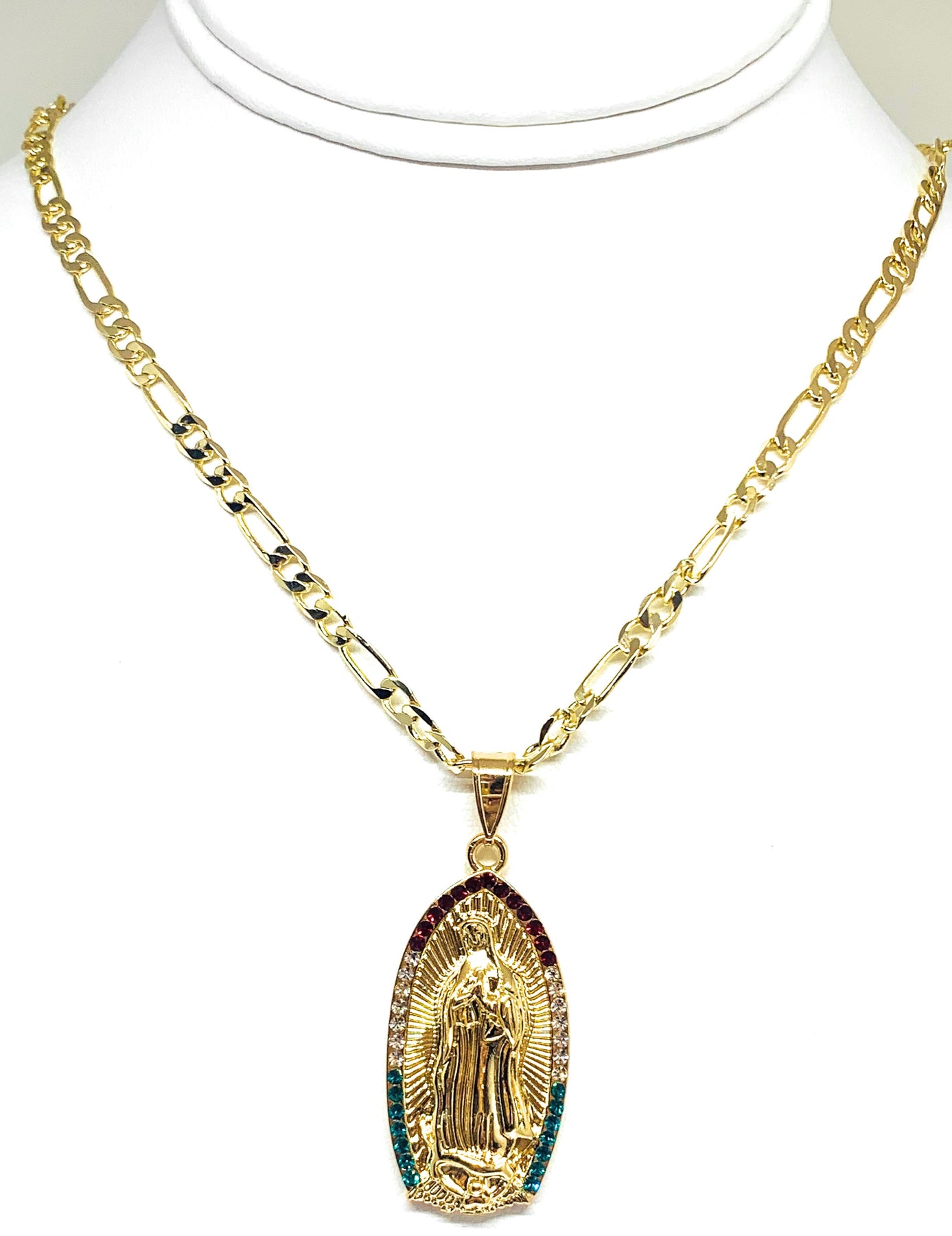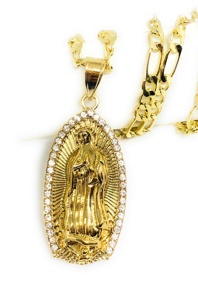 Gold Plated Virgin Mary Pendant Necklace Figaro 24" Virgen de Guadalupe