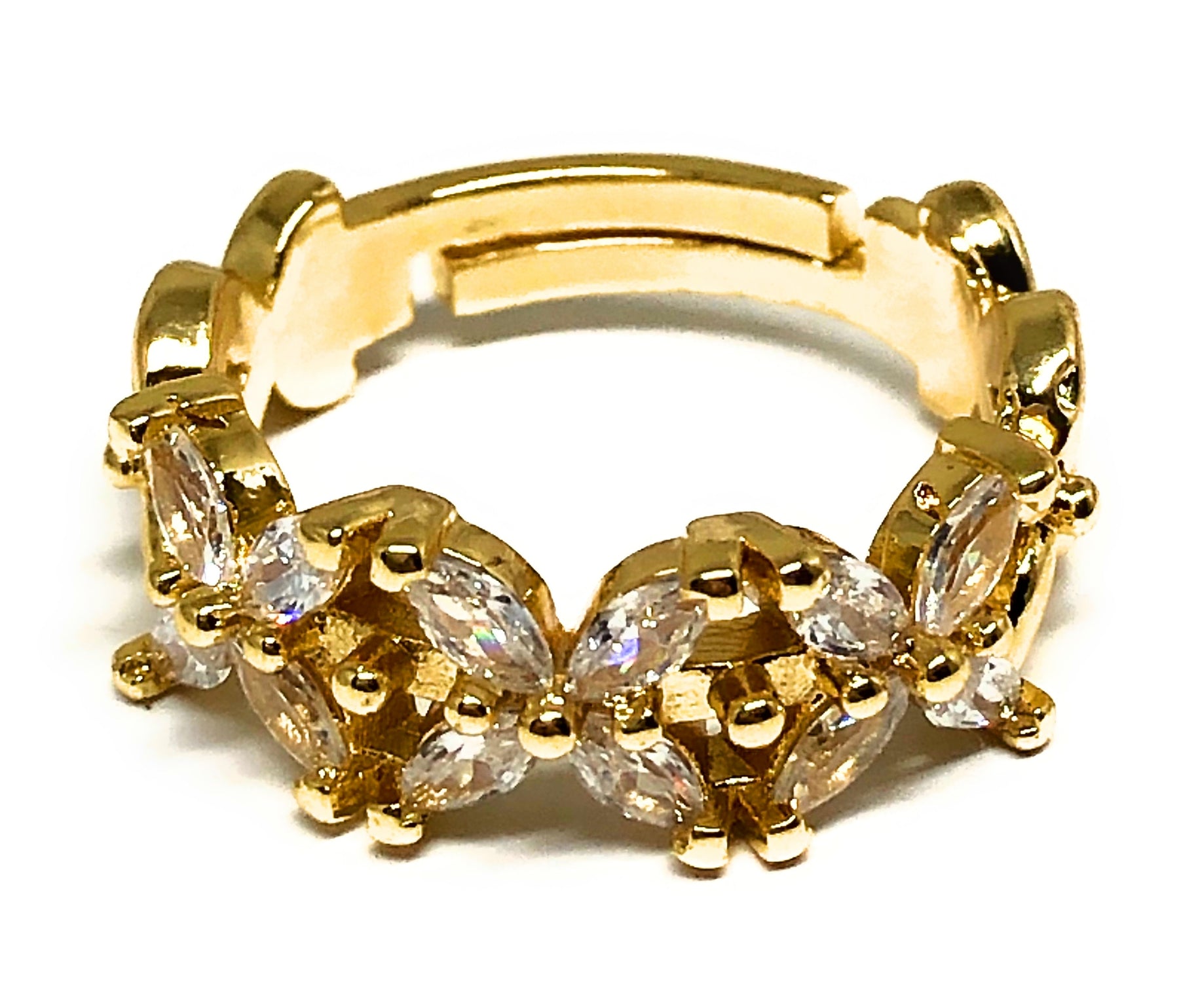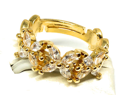 Gold Plated WHITE CZ Flower Adjustable Ring Anillo