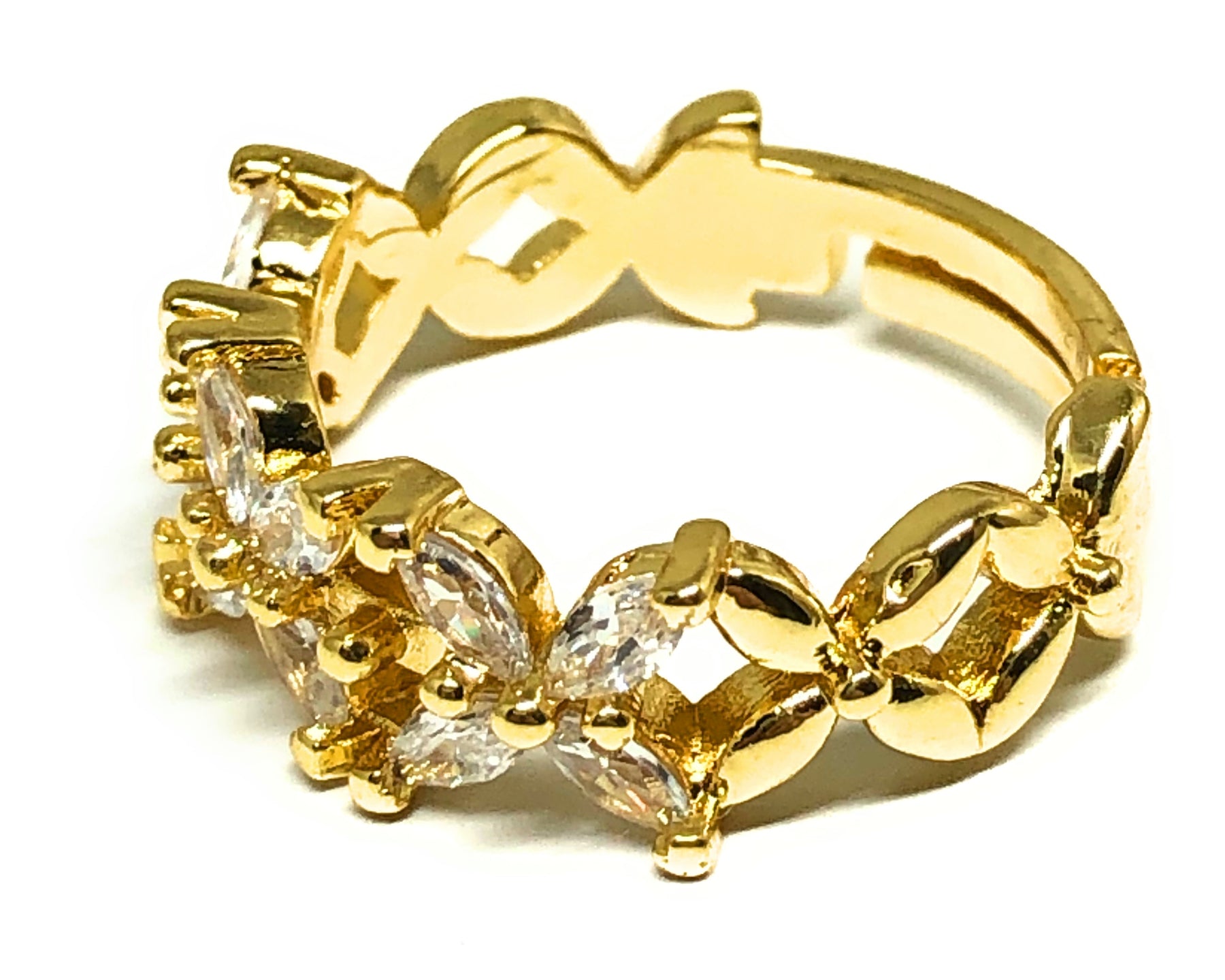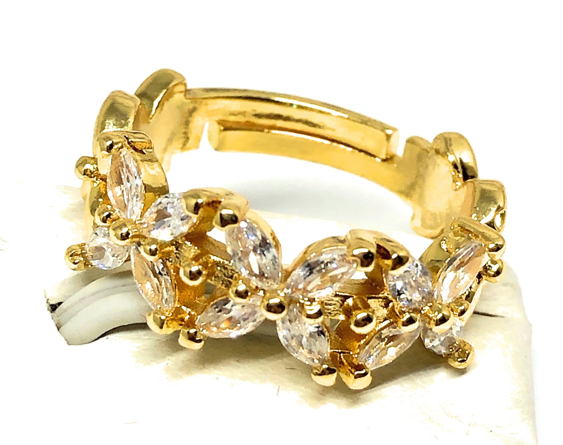 Karina Martinez Gold Plated WHITE CZ Flower Adjustable Ring Anillo