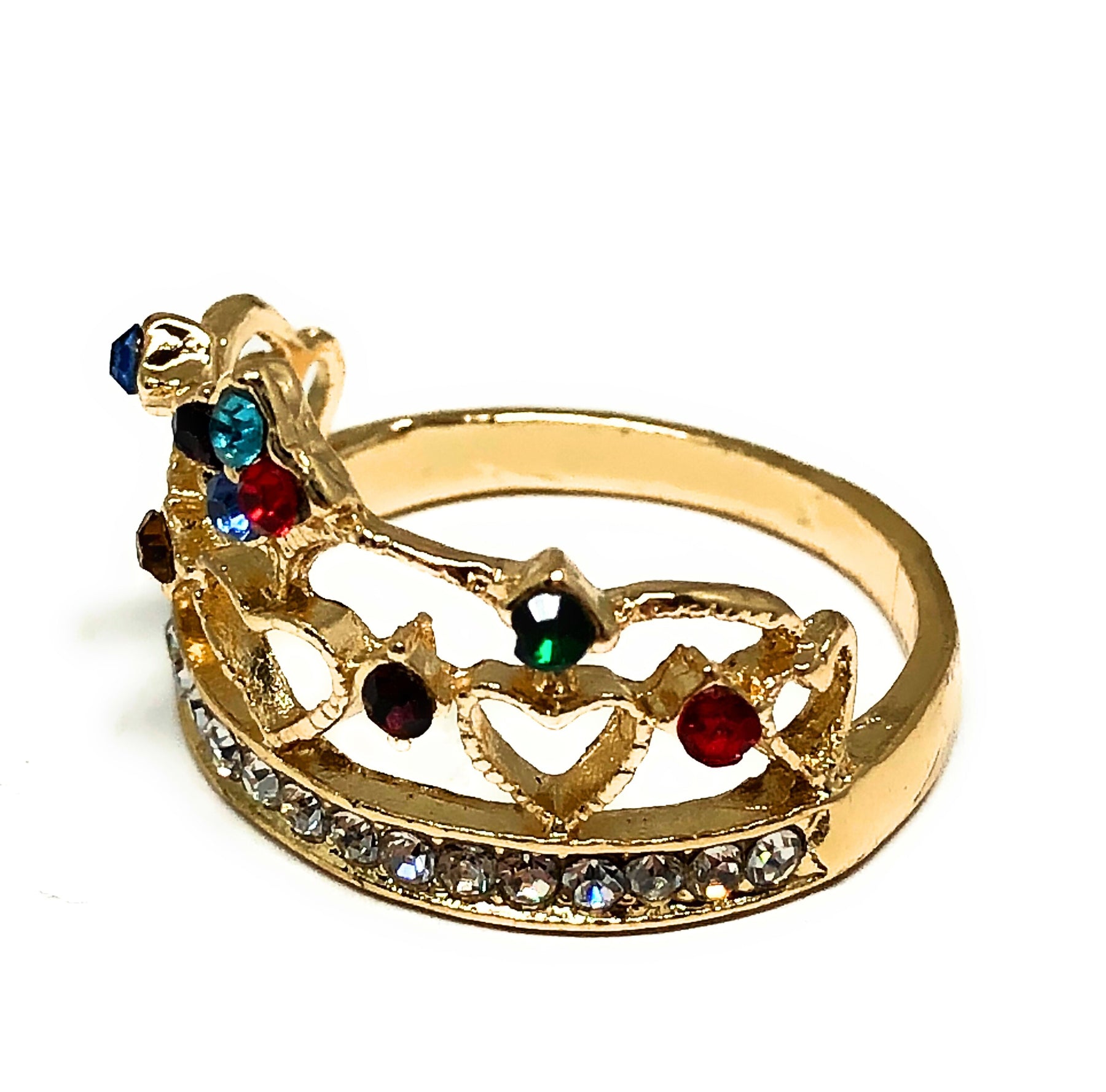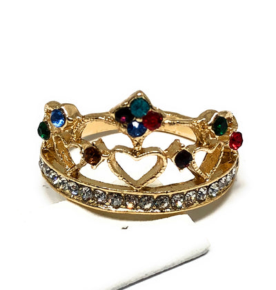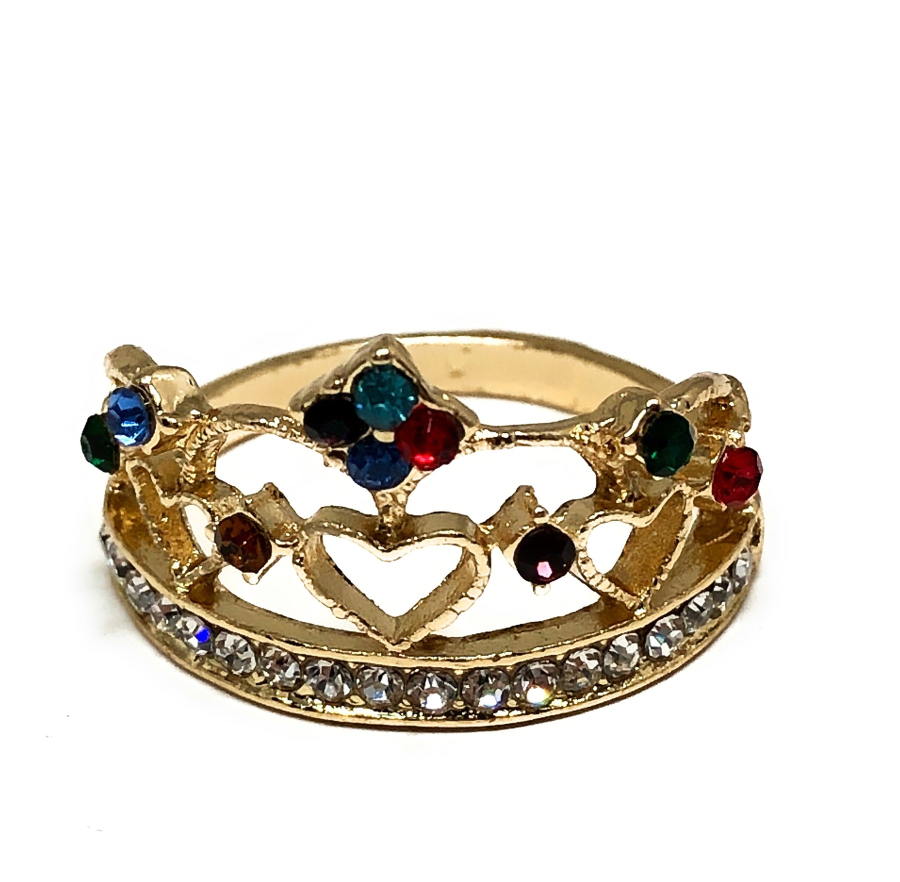 Gold Plated Women’s Queen Crown Ring with Multi-Color Stones Anillo Corona