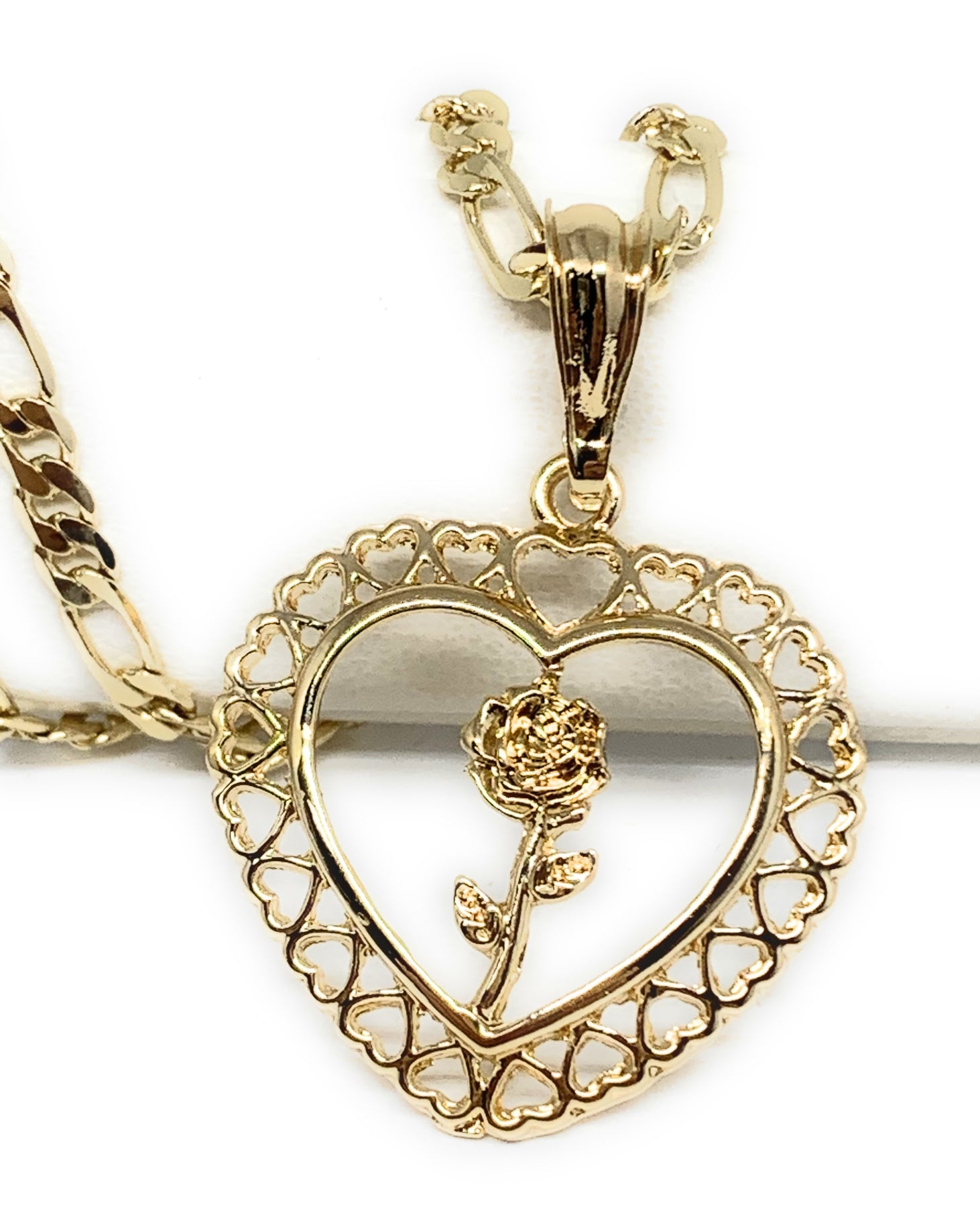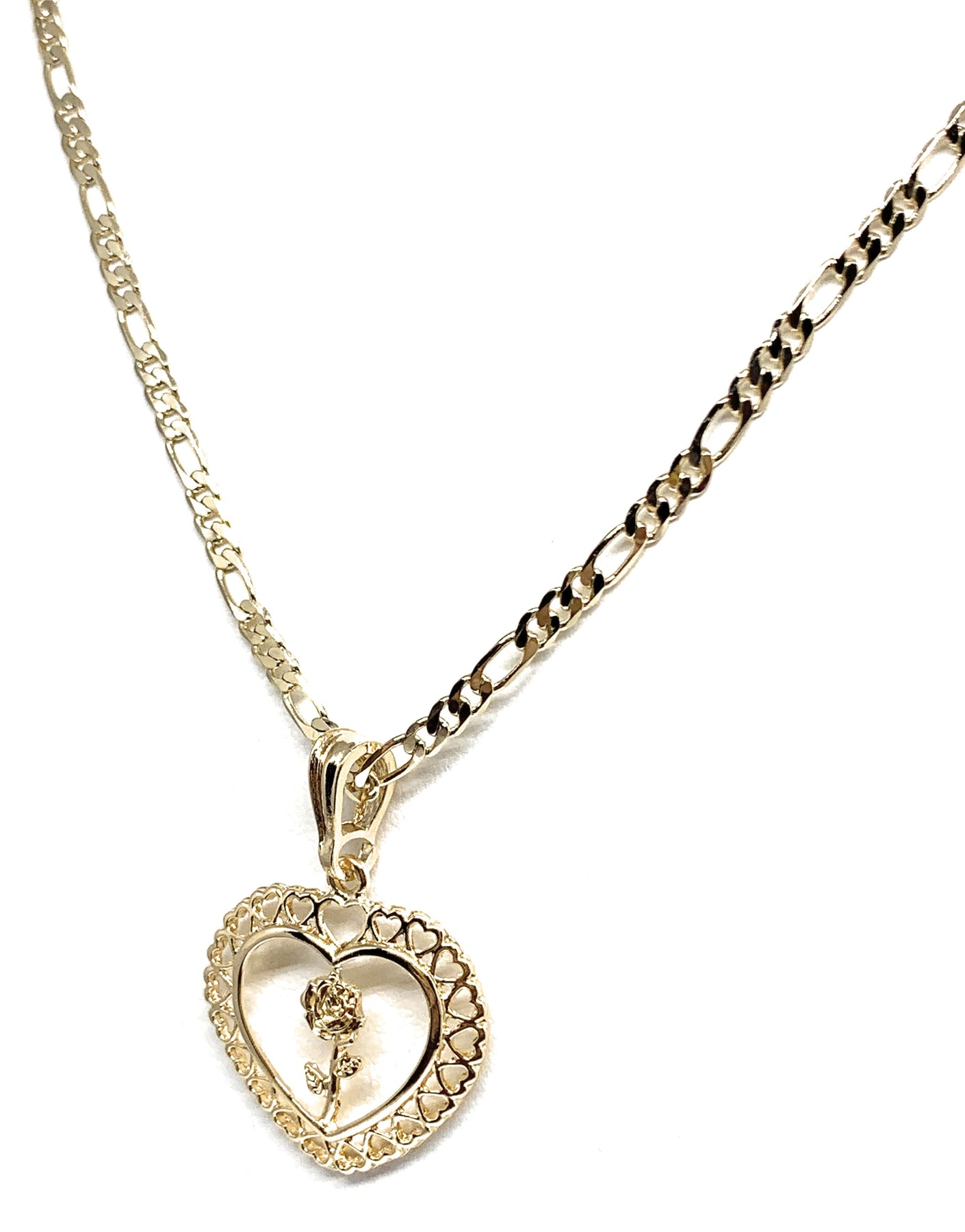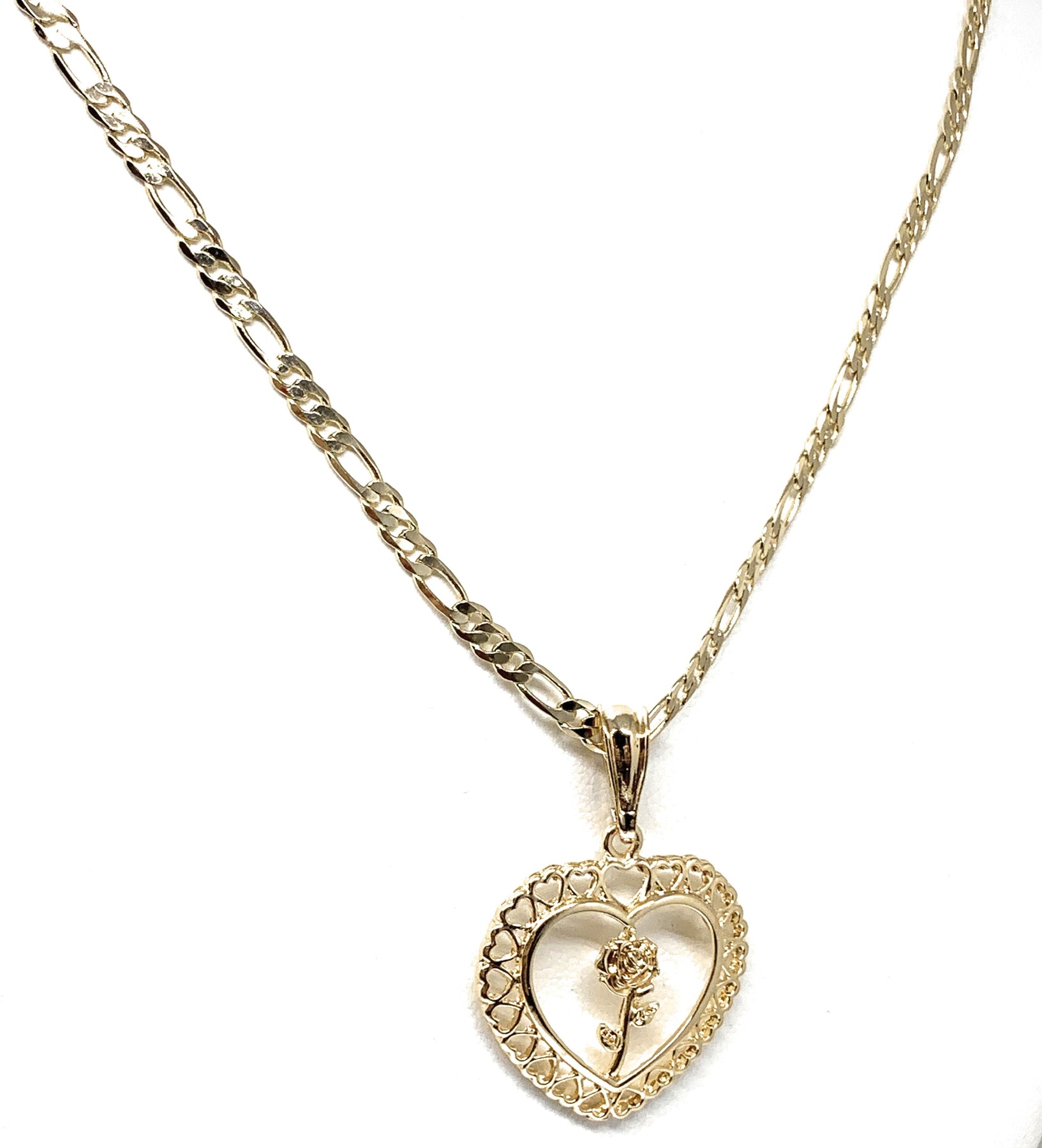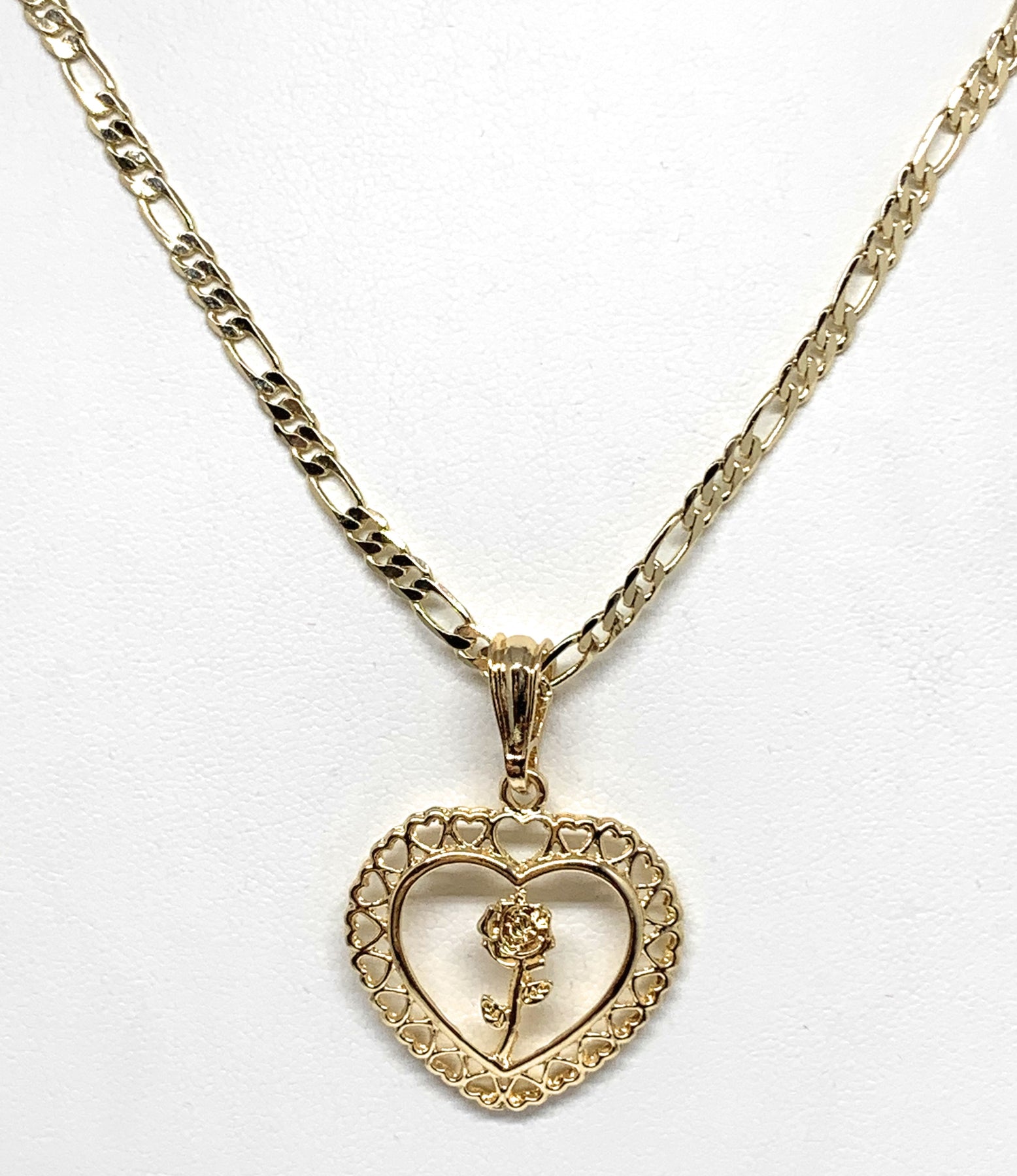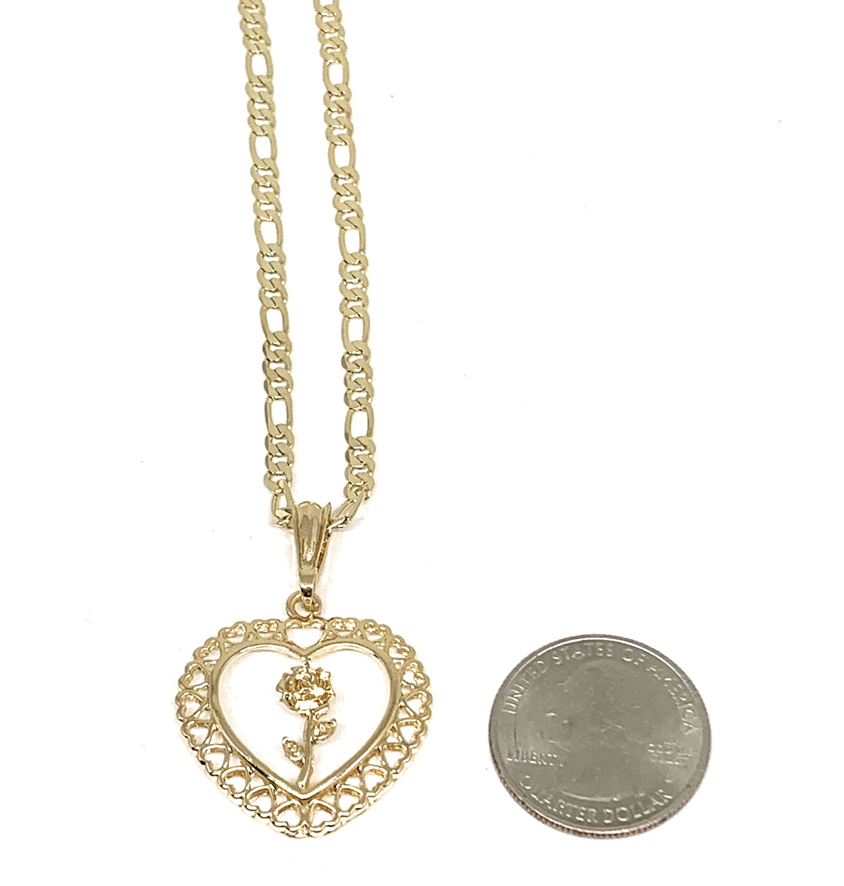 • Flower Design Pendant comes with 24 inch figaro chain with 3mm width.
