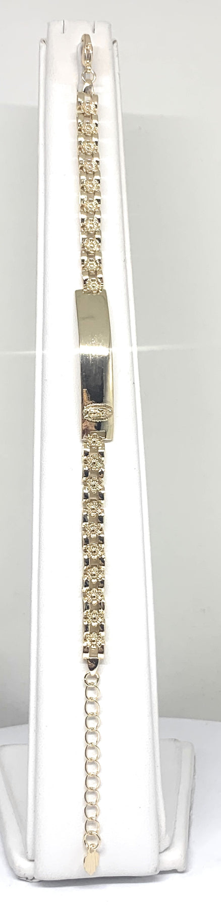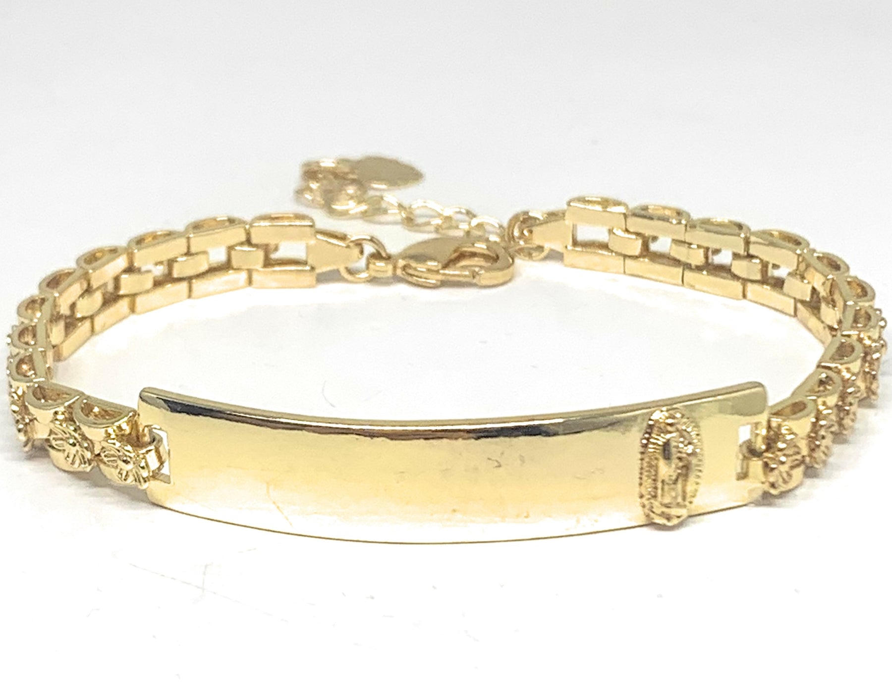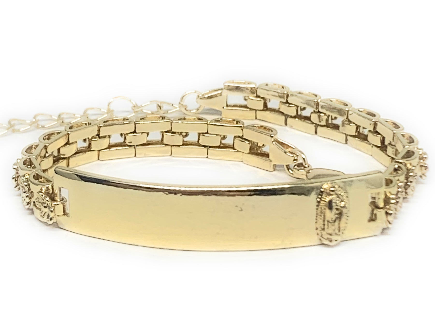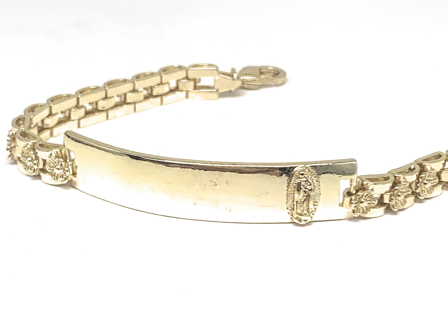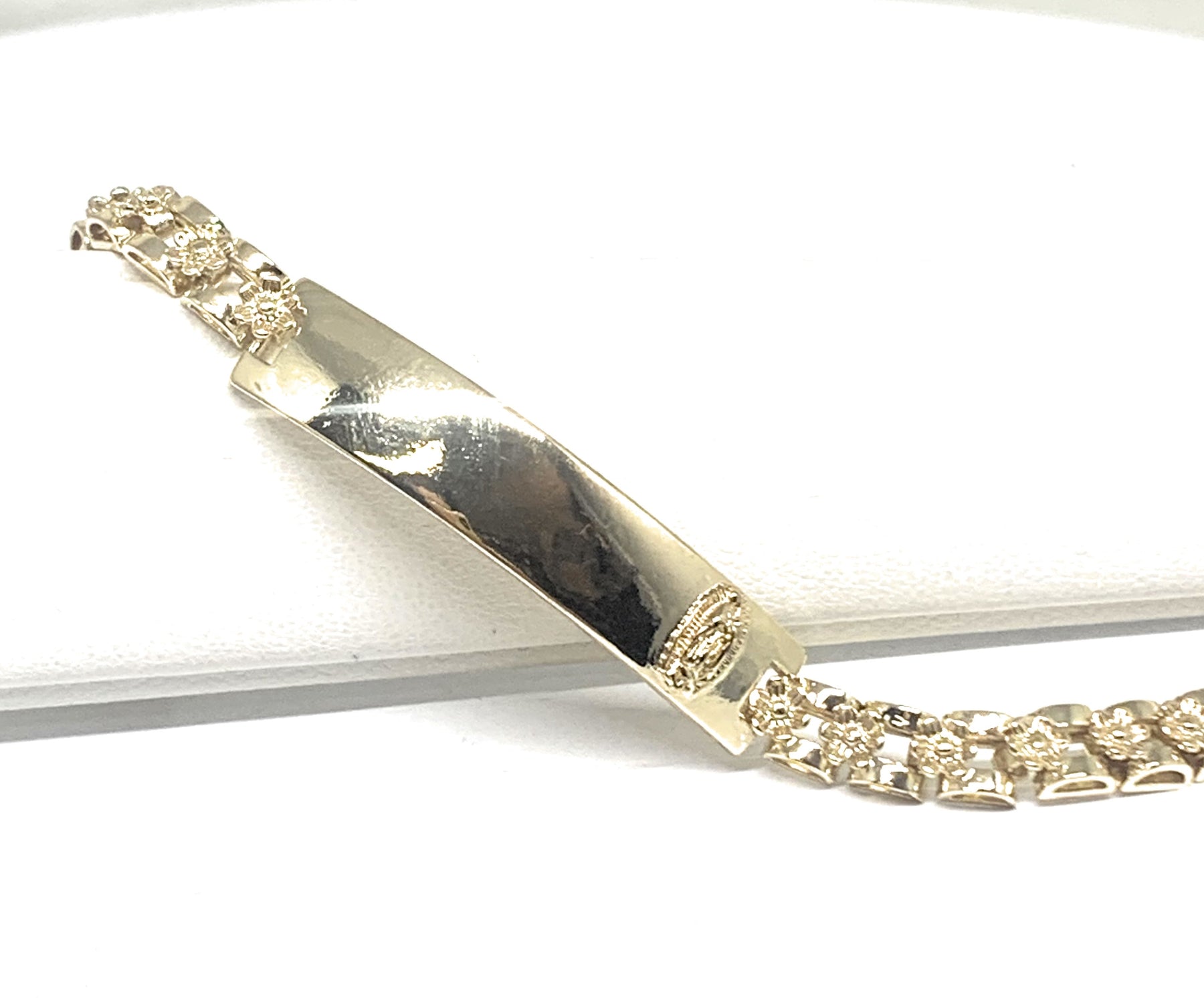 Gold Plated Yellow Virgin Mary Flower ID Bracelet 7.5” 5.5mm Width Esclava