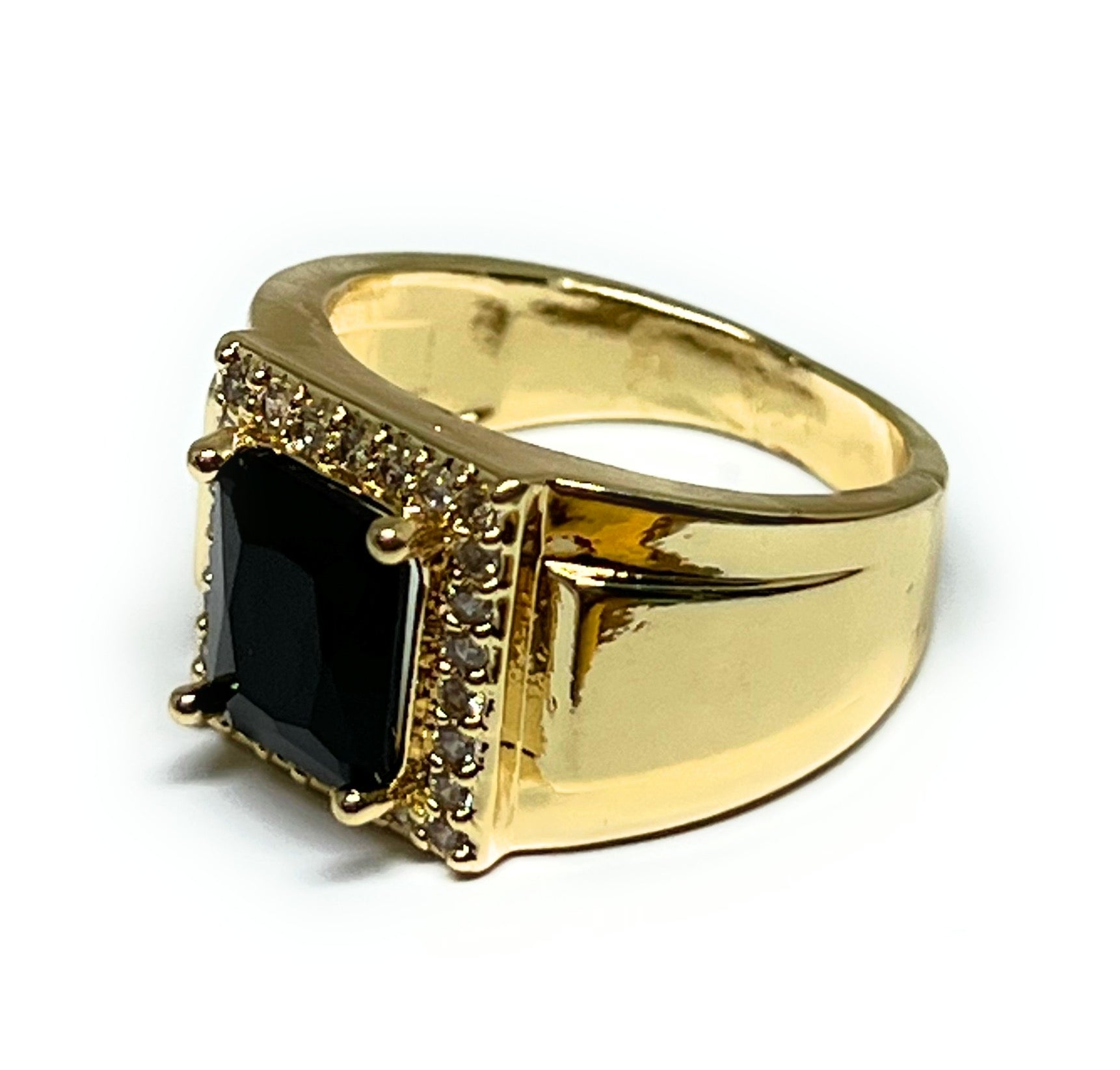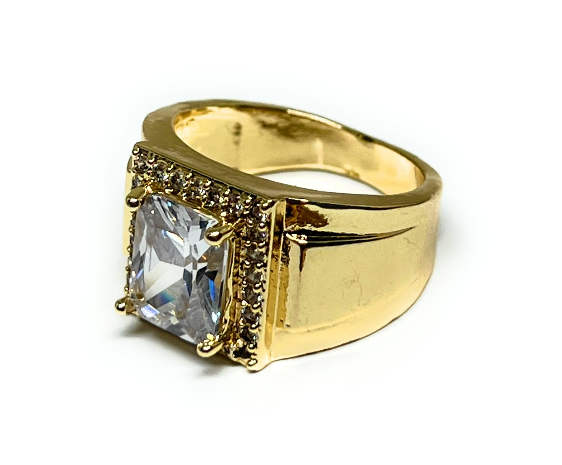 Men's Gold Plated Single Stone Cubic Zirconia Ring Anillo