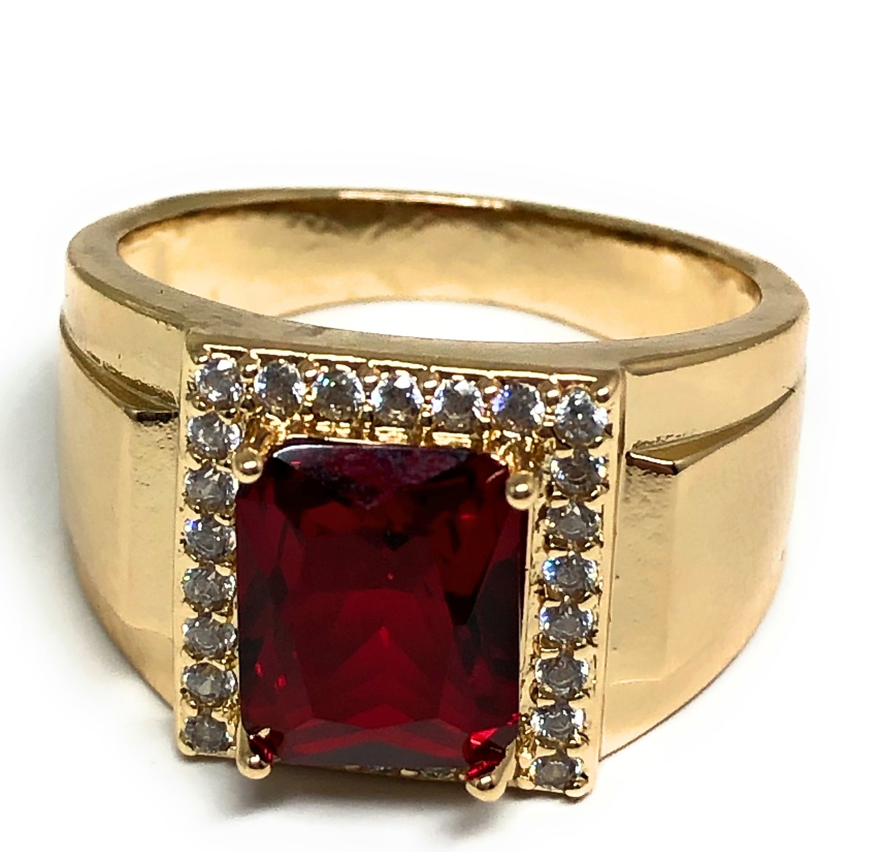 - the stone ring comes in various sizes and in either red or black cubic zirconia.